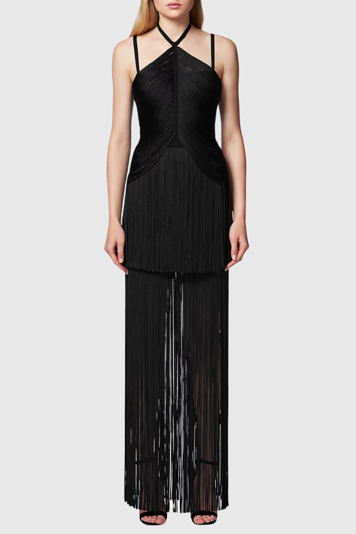 Doly Halter Fringed Maxi Bandage Dress - Black