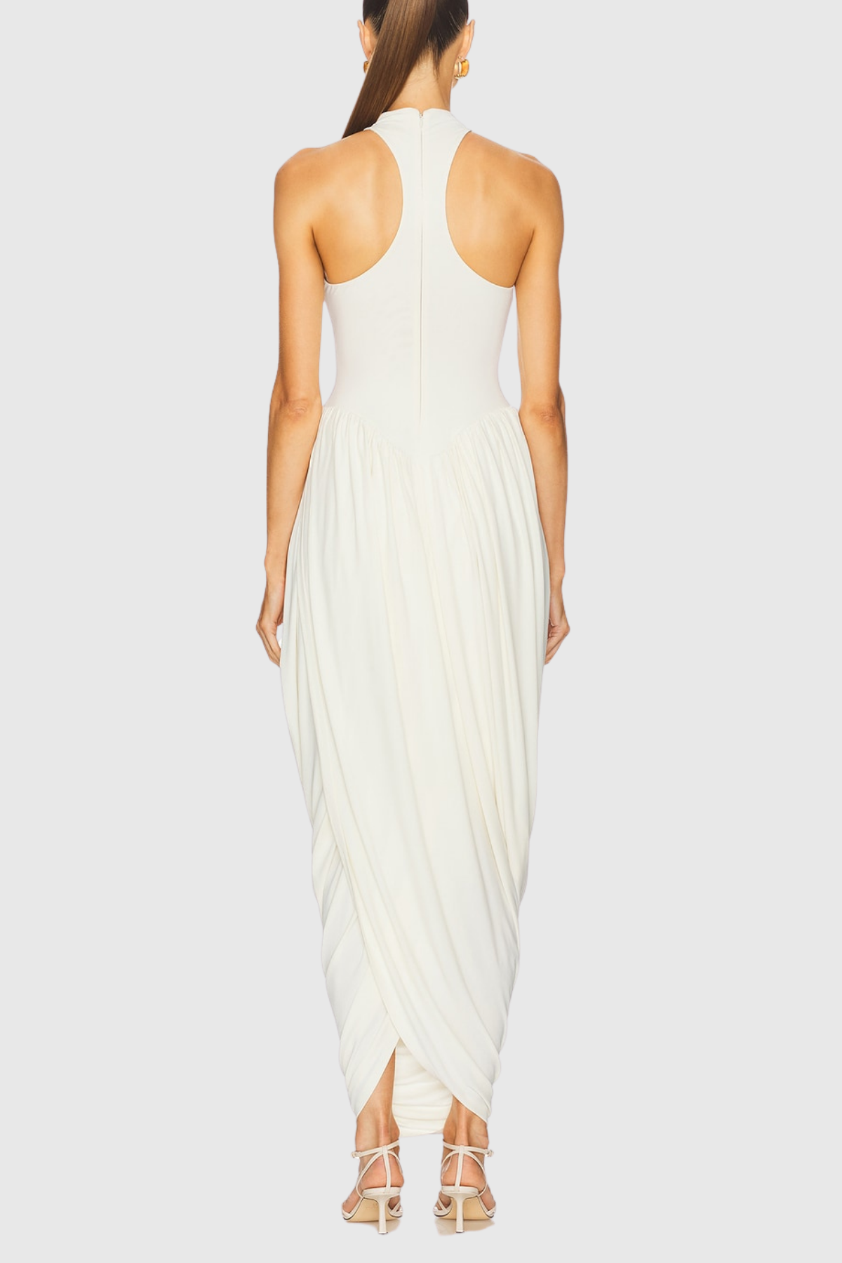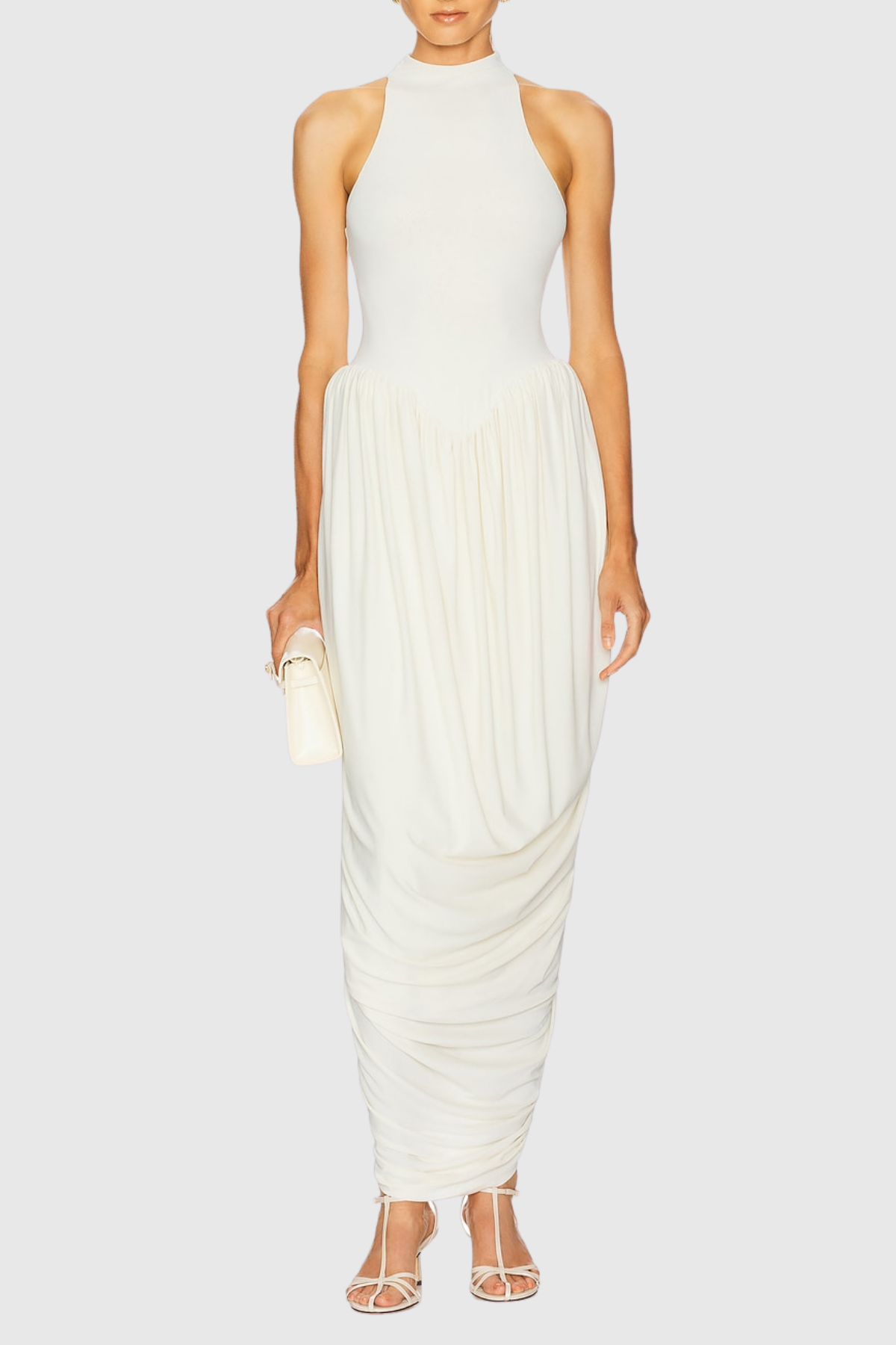 Elevate your wardrobe with the Doyle Sleeveless Ruched Midi Dress in classic white. Its sleek silhouette is enhanced by elegant ruching that flatters your figure while providing comfortable stretch. Perfect for sophisticated occasions, this midi-length dress blends timeless style with modern refinement, making it an essential piece for effortless, polished looks.