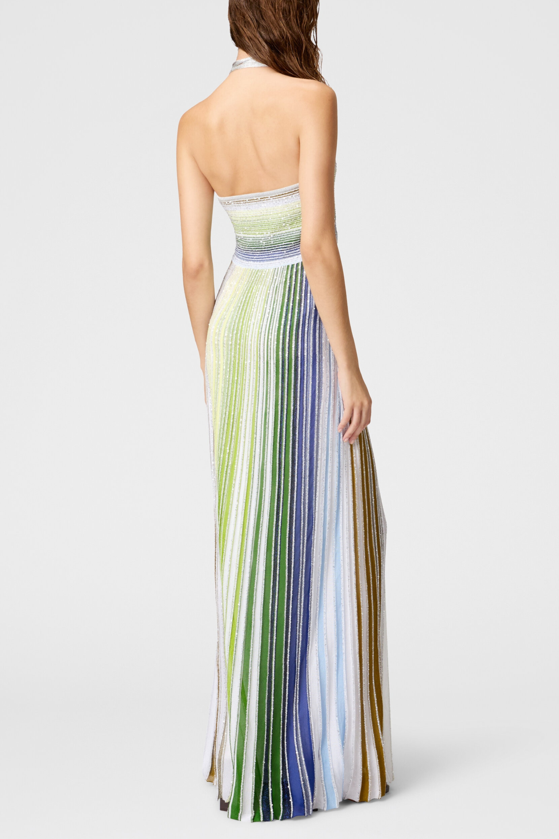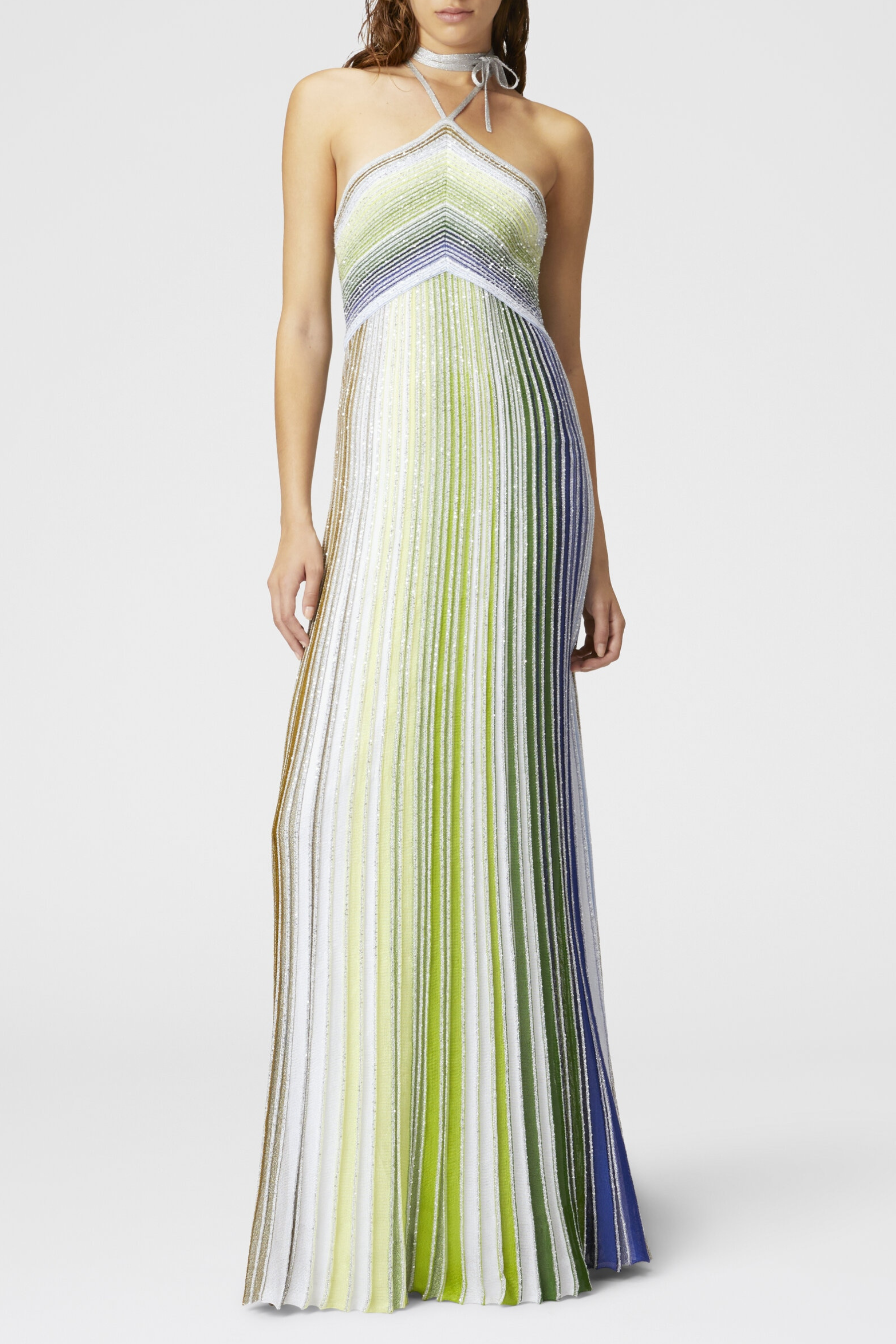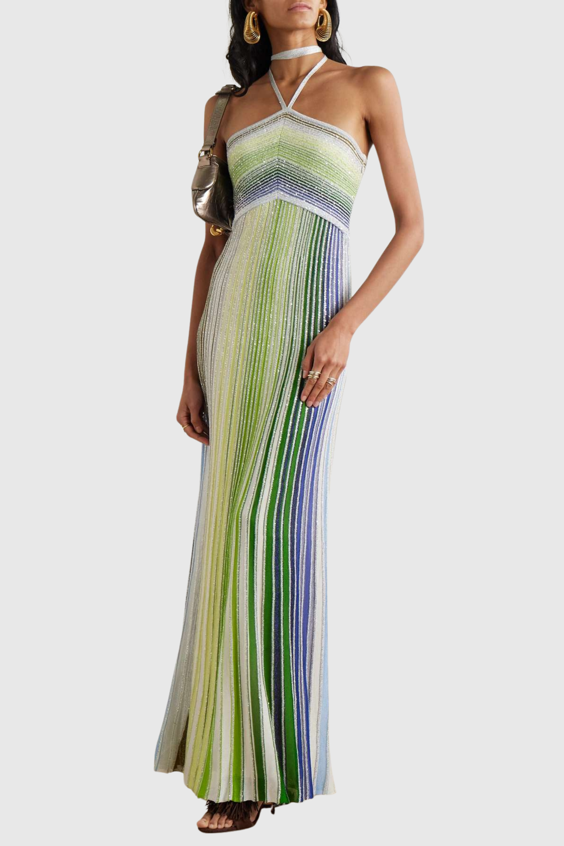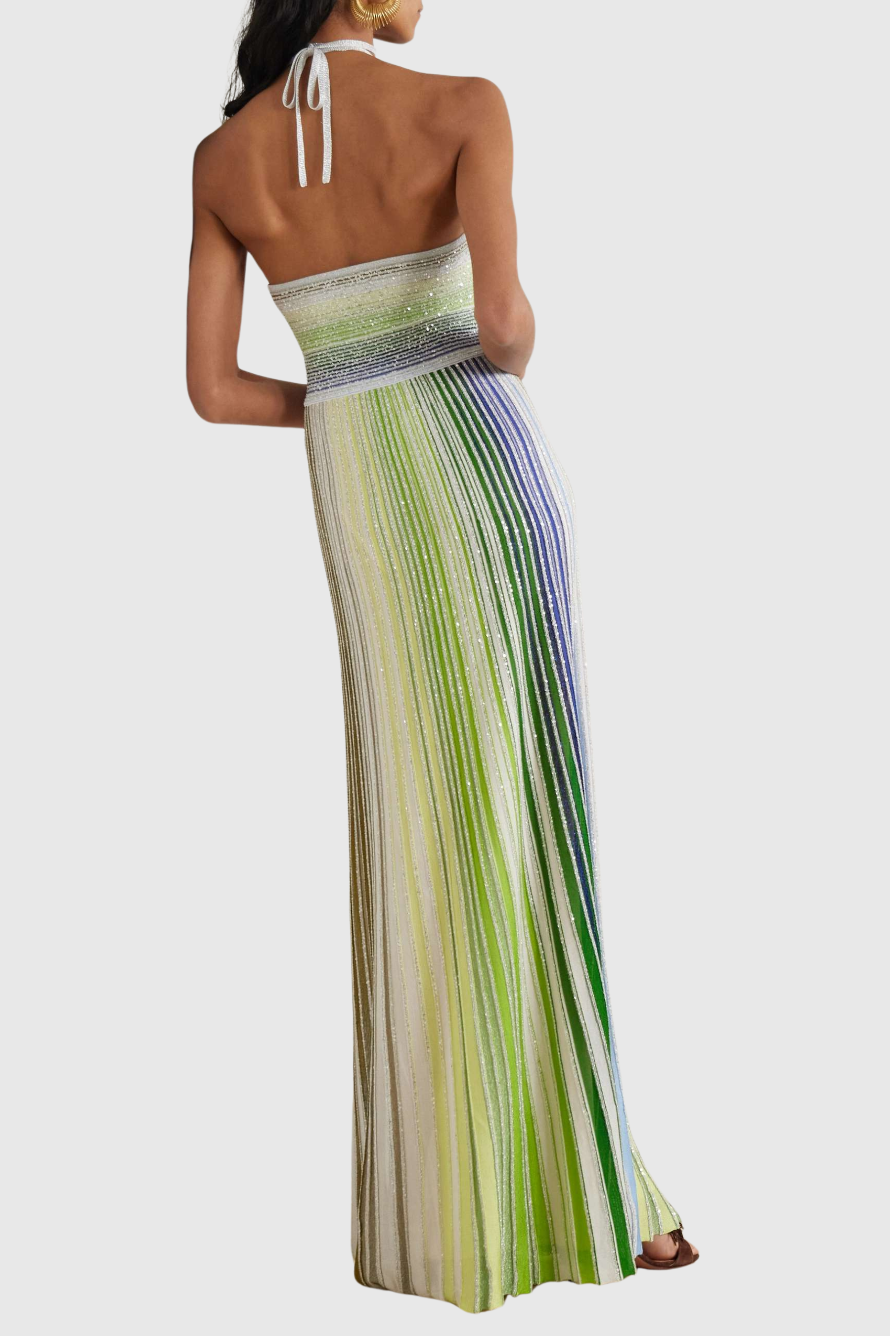 Fltya Halter Metallic Gradient Knit Maxi Dress - Green