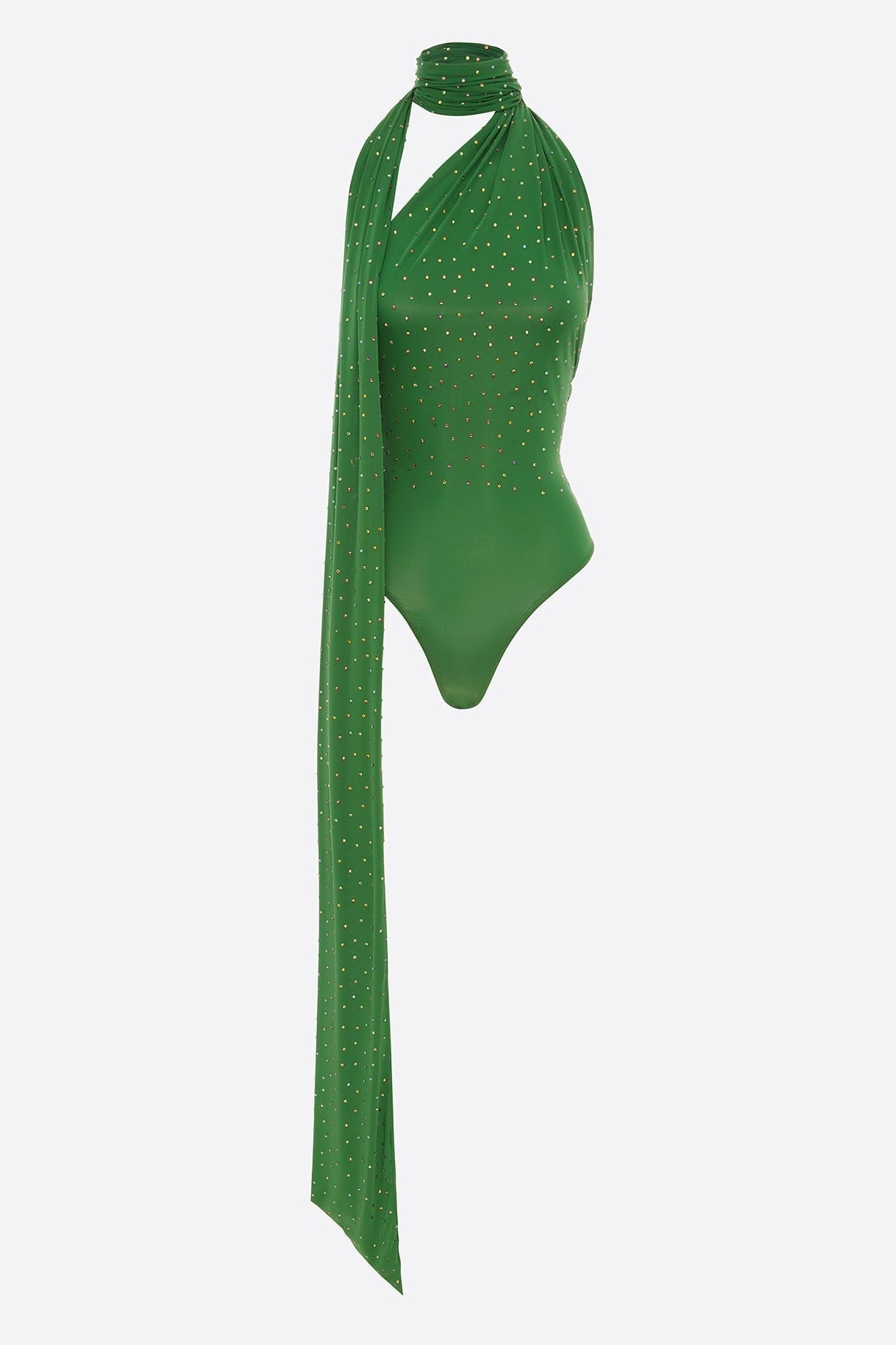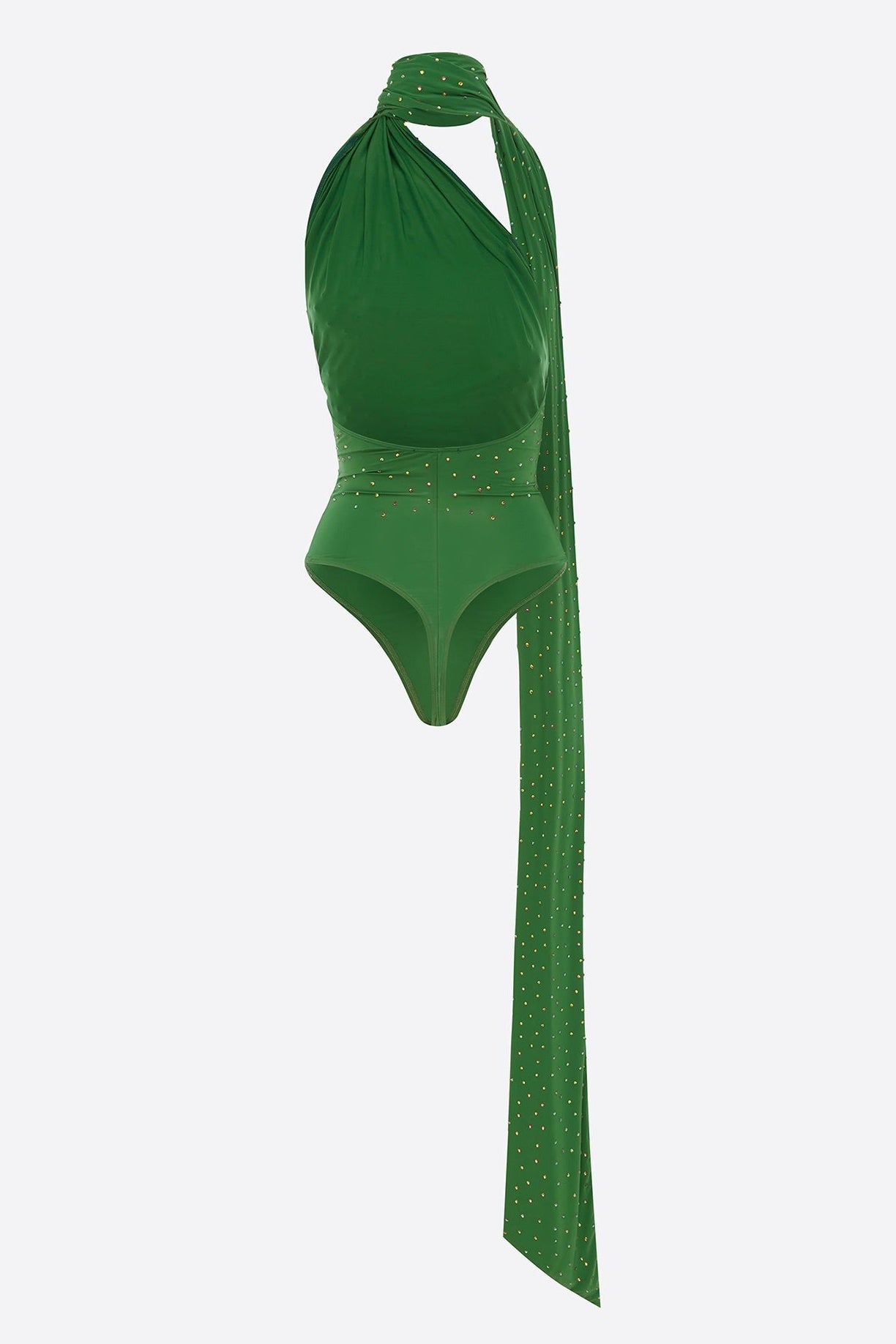 Haymita Crystal Scarf Wrap Bodysuit Two Piece Set