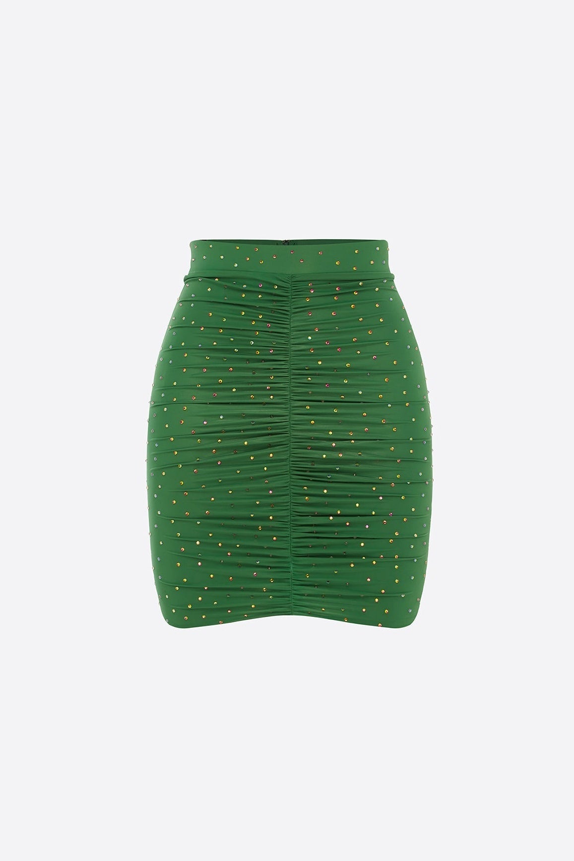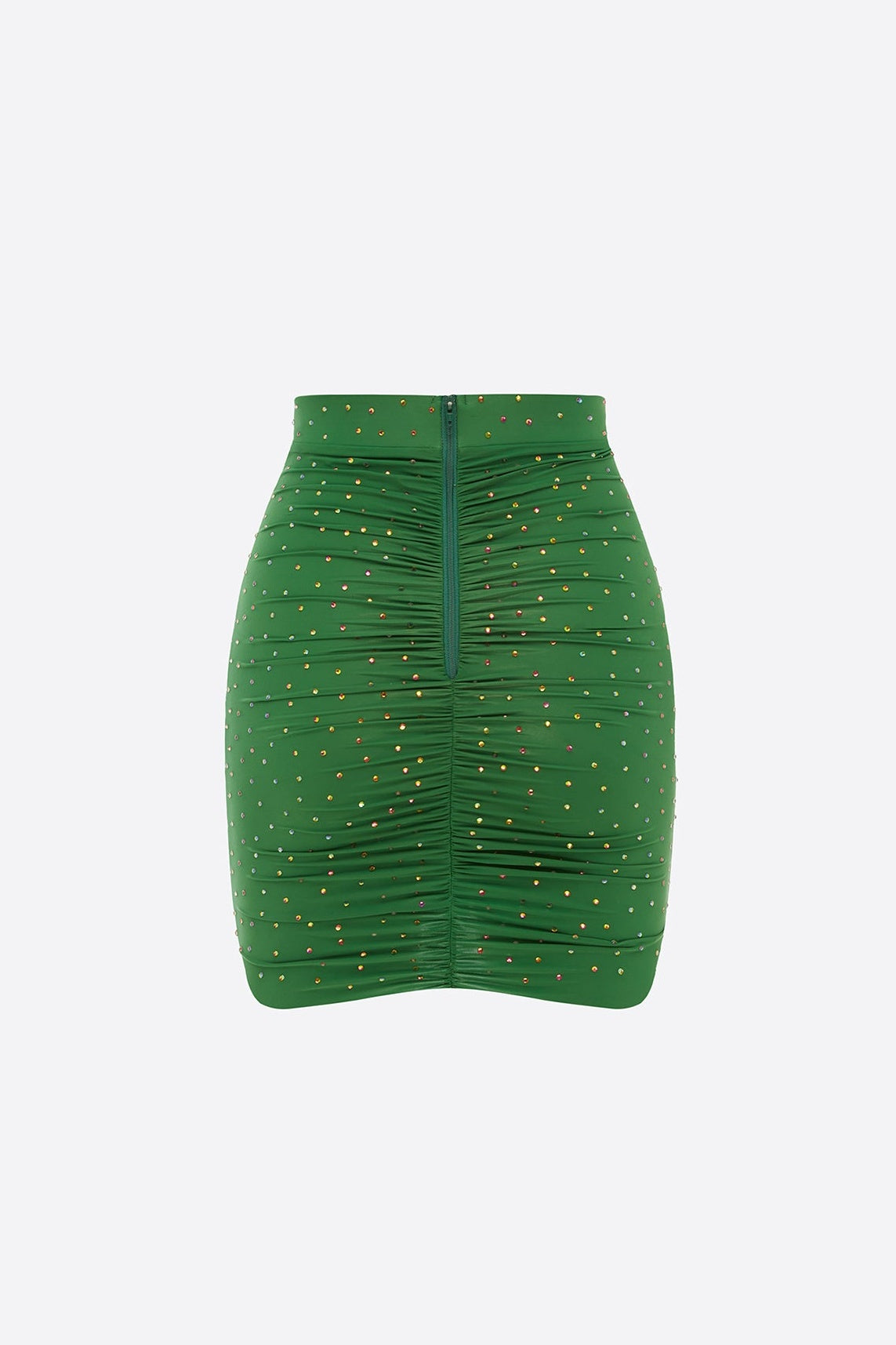Effortlessly chic and luxurious, the Haymita Crystal Scarf Wrap Bodysuit Two Piece Set is a must-have for any fashion lover. With a crystal-embellished scarf wrap bodysuit and a ruched skirt, this set exudes sophistication and exclusivity. Make a statement and elevate your wardrobe with this stunning two piece set.