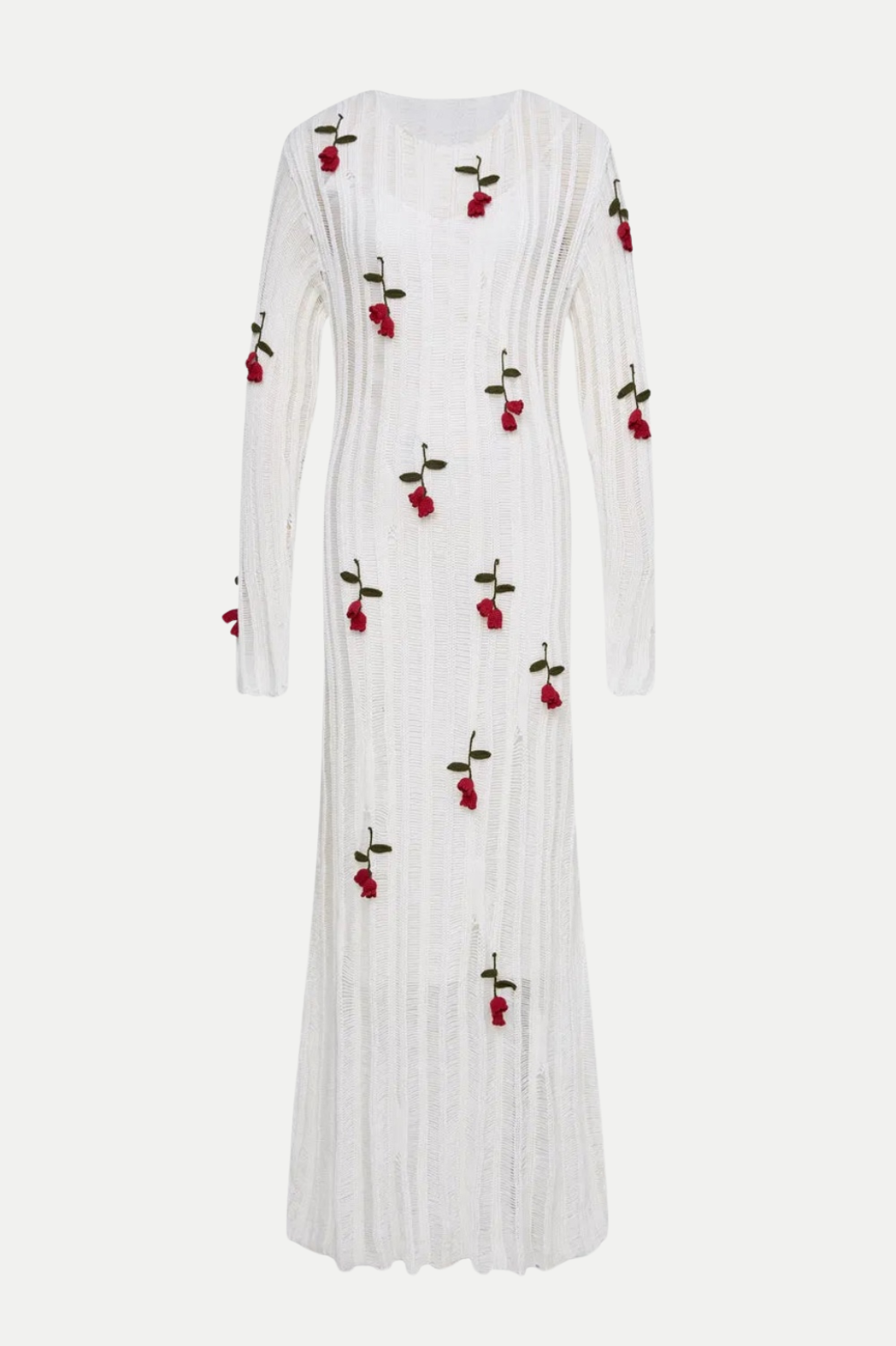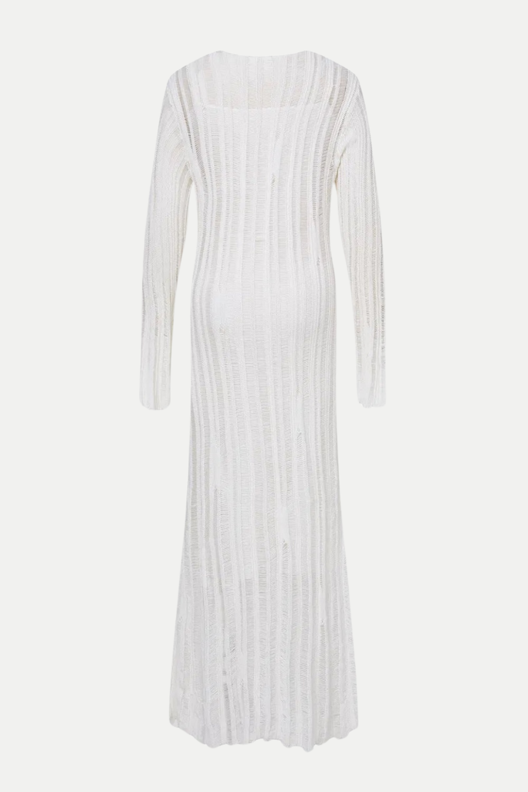 Hilaria Rose Handcrafted Knit Midi Dress - White