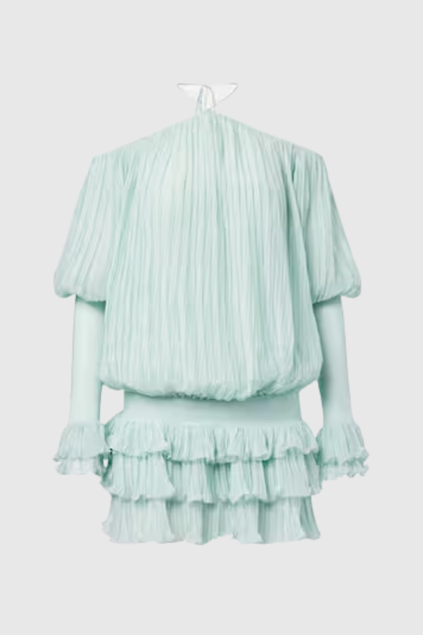 Inaki Halter Pleated Ruffle Mini Dress - Blue
