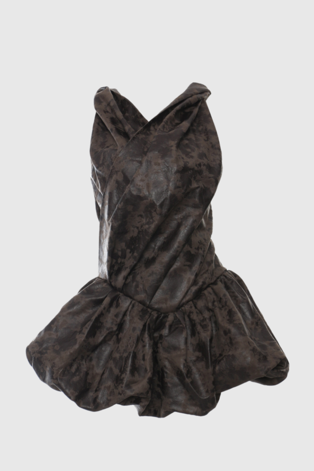 Take on the night in the fearless Jayne Backless Rock Leather Mini Dress. This bold dress boasts a backless design and is crafted from high-quality leather for a daring and edgy look. Perfect for those who love to take risks and make a statement.