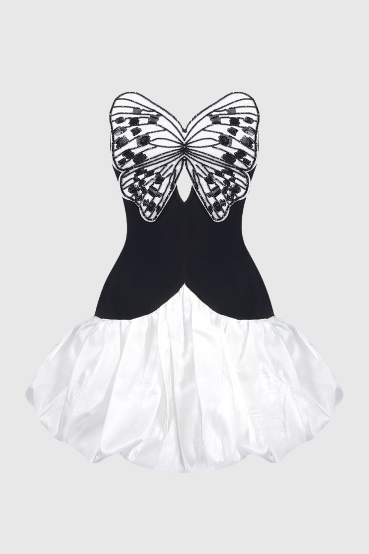 Kaidee Butterfly Strapless Puffy Mini Dress