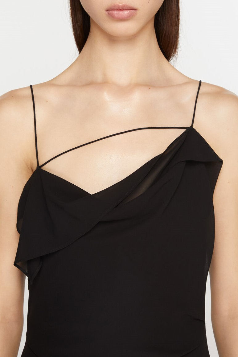 Kenzia Asymmetric Ruffle Midi Dress - Black
