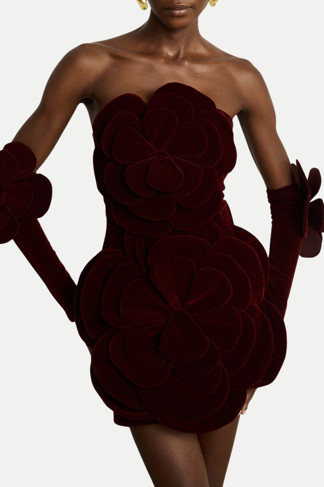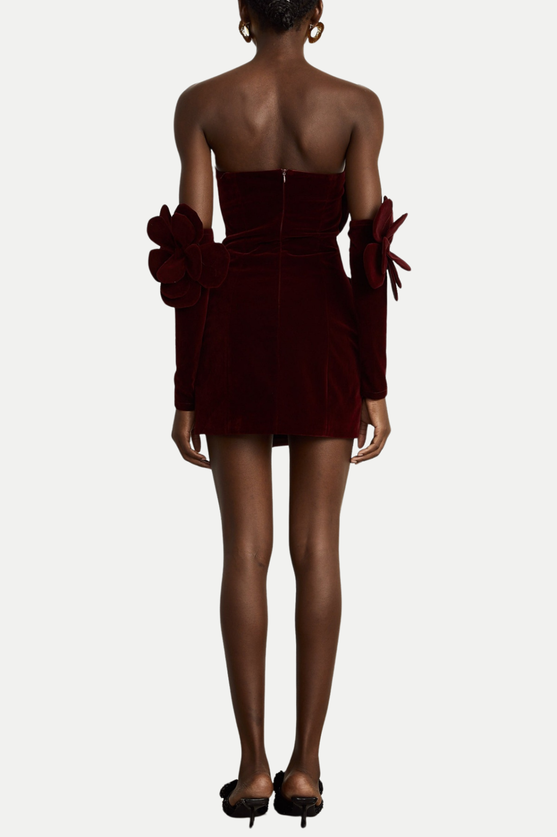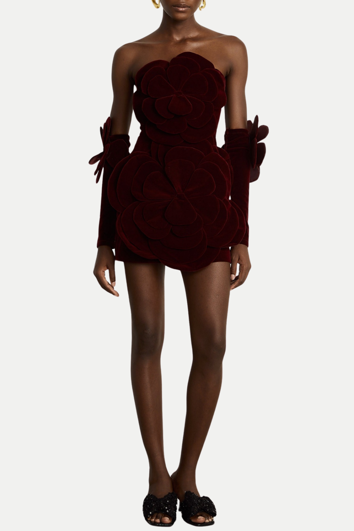 Kerio Floral Appliqué Velvet Mini Dress - Red