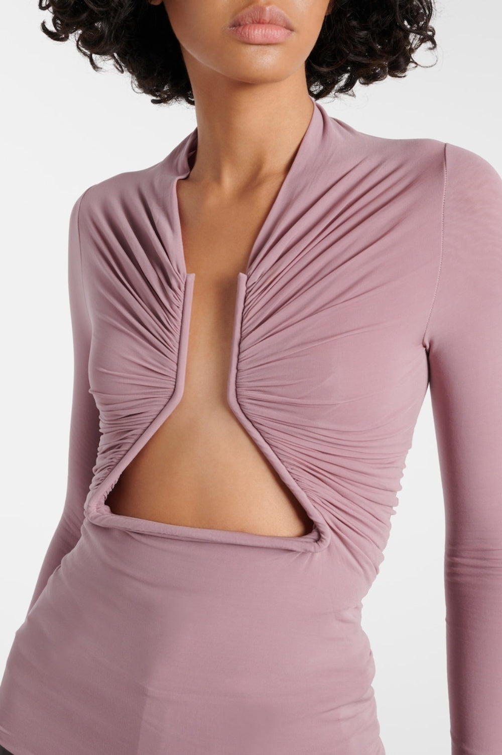 Conquer the fashion game with Kohana! The Cutout Ruch Bodycon Top in Pink will elevate your look with its bold design and enticing cutouts. Take a risk and stand out in this bodycon top, perfect for any daring fashionista!