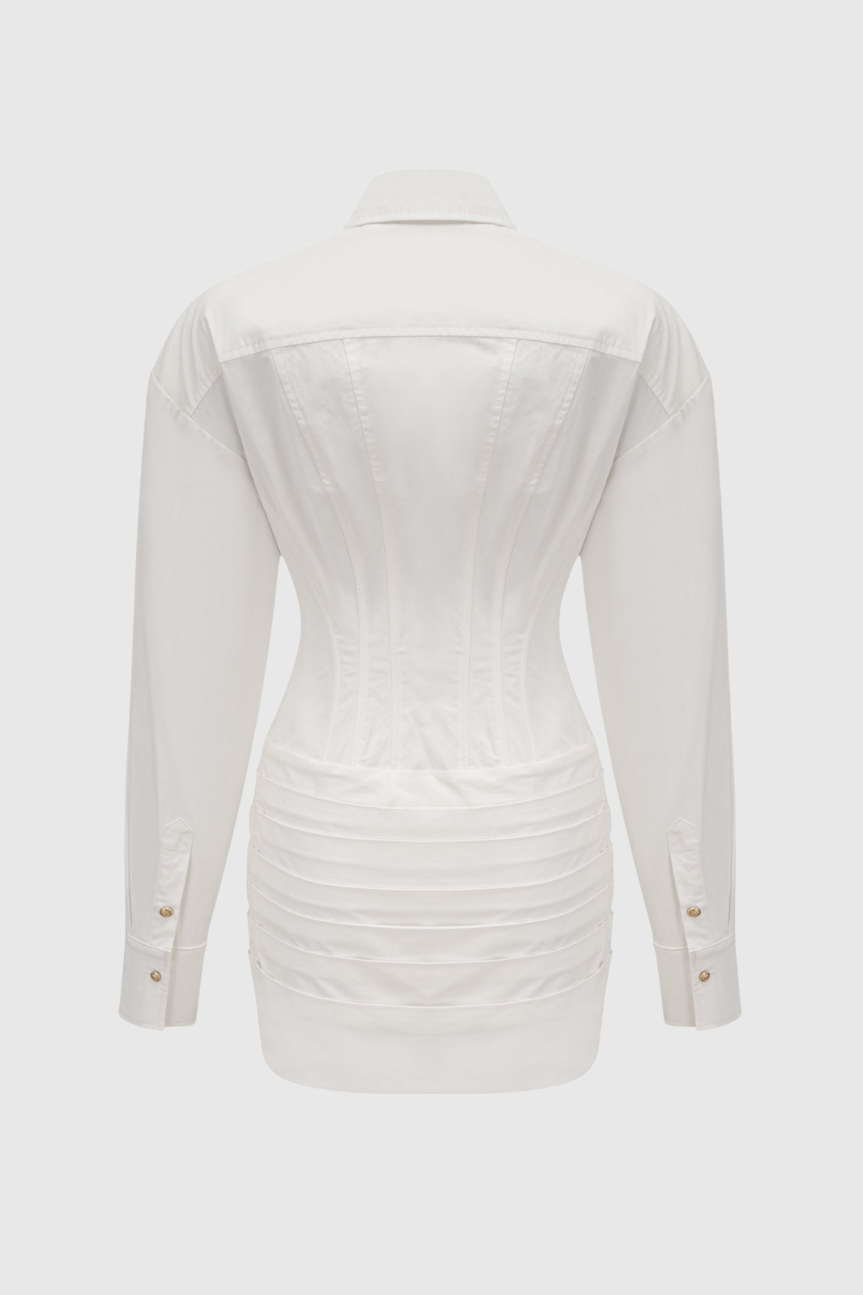 Kretska Cinched-waist Pleated Mini Shirt Dress - White