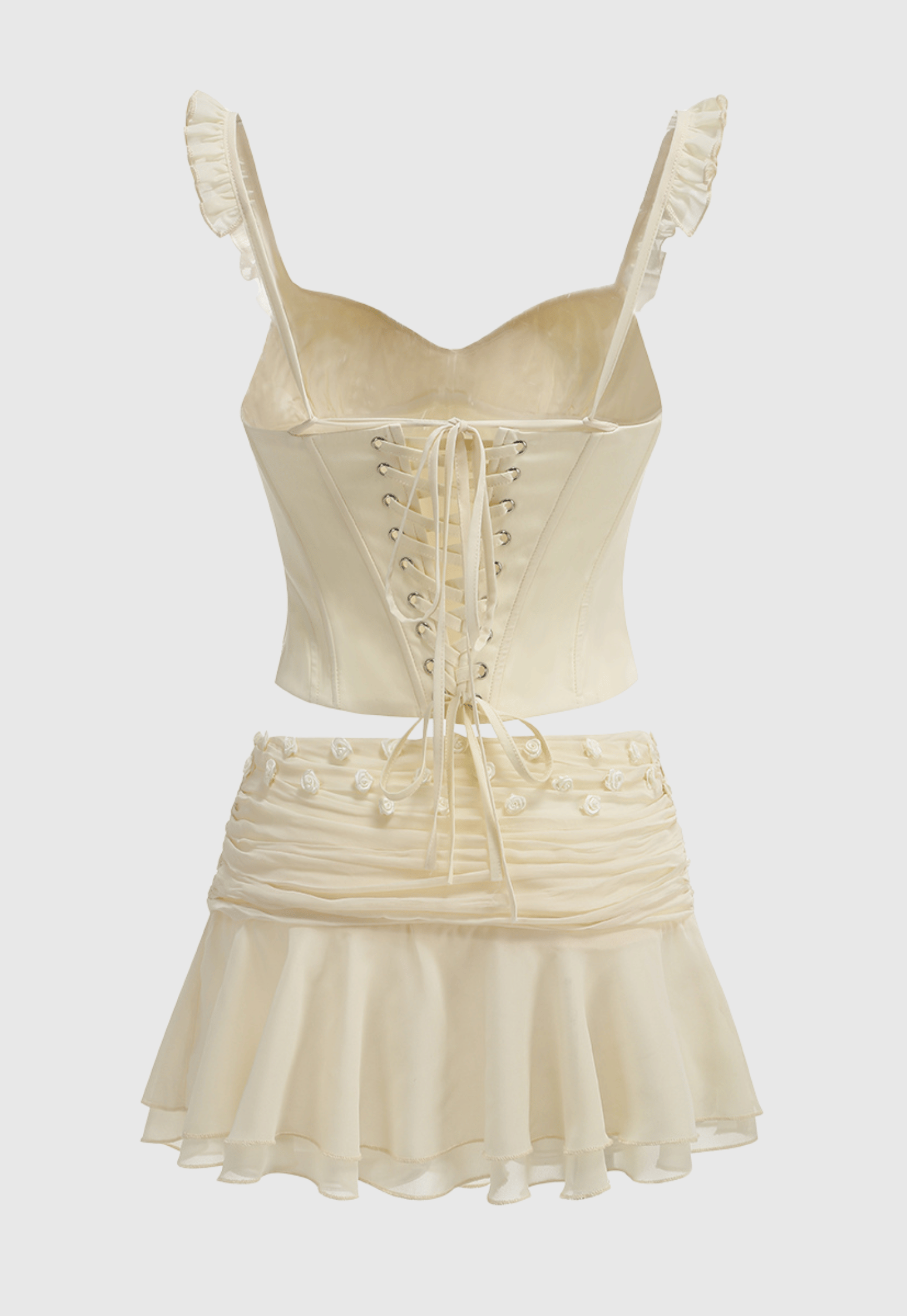 Unleash your playful side with our Lagina Corset Lace Up Ruffle Skirt Set! This set features a stunning lace-up corset top and a playful ruffle skirt that will turn heads wherever you go. Perfect for adding a touch of quirkiness to your wardrobe.