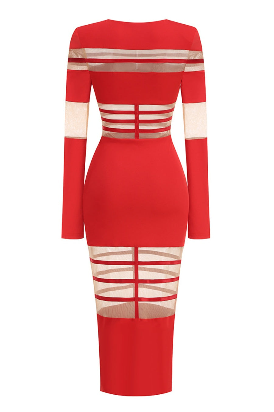 Londyn Mesh Long Sleeve Midi Dress - Red