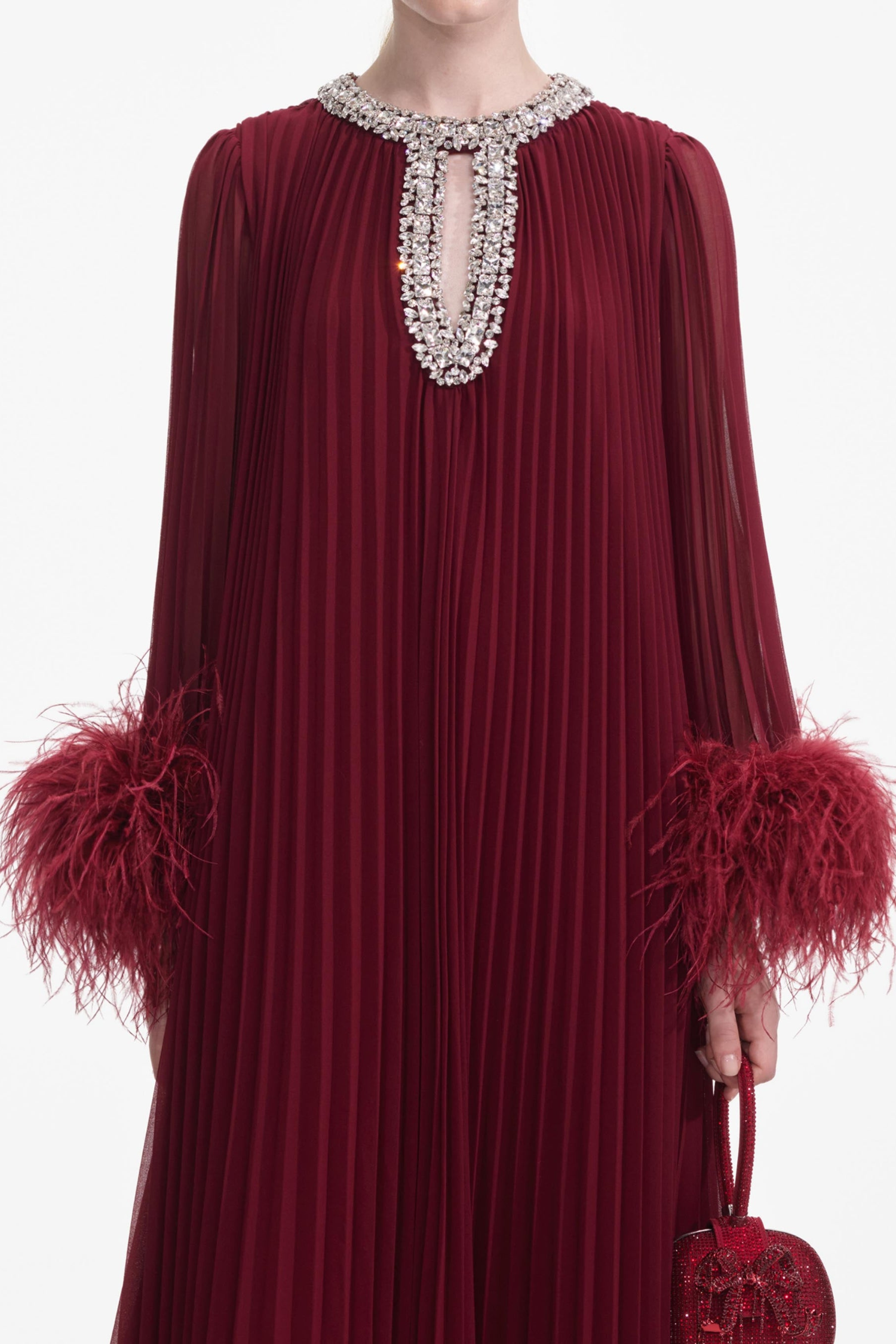 Manja Diamante Chiffon Feather Maxi Dress - Red