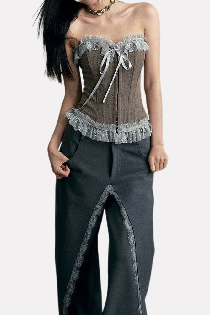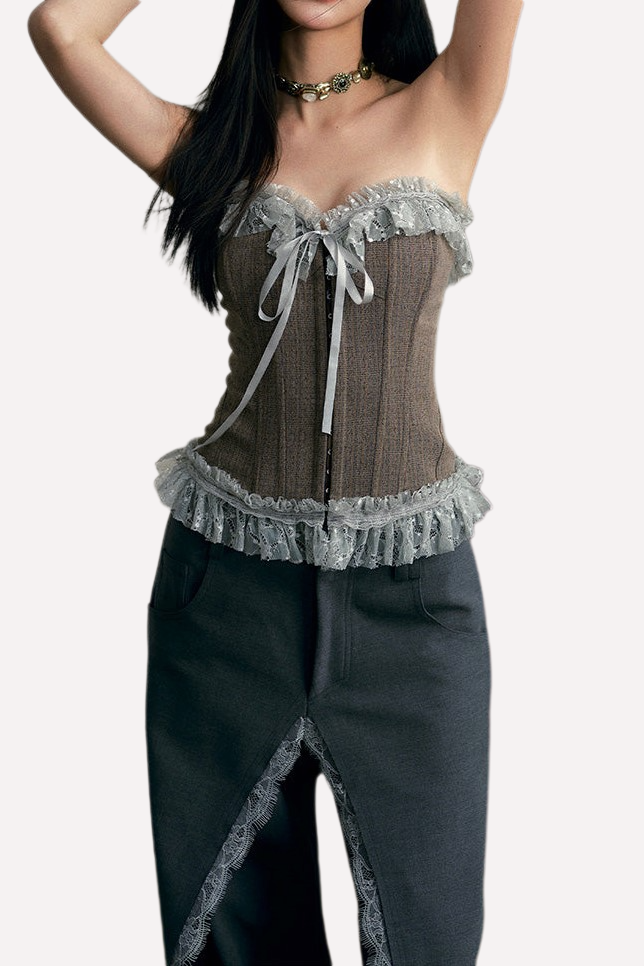 Be the queen of seduction in our Maria Lace Ruffle Corset! With its delicate lace and playful ruffle details, this corset will have heads turning. Perfect for adding a touch of whimsy to your lingerie collection.