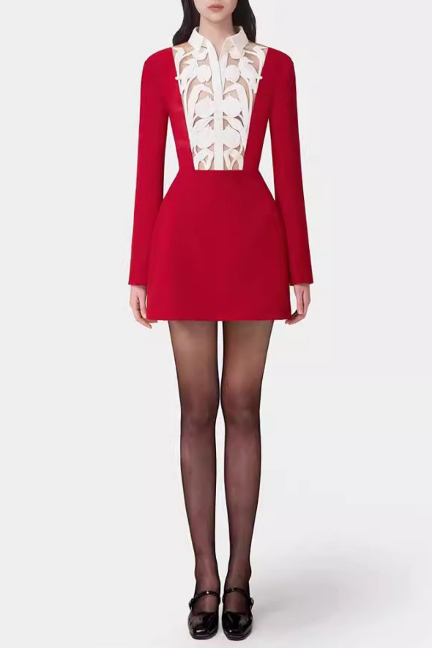 This red Mayena Floral Cutout Mini Dress exudes elegance with its delicate floral cutouts. The figure-hugging fit and mini length showcase your silhouette, while the soft fabric adds luxurious comfort. Perfect for a night out, this dress is a sophisticated and exclusive choice for any occasion.