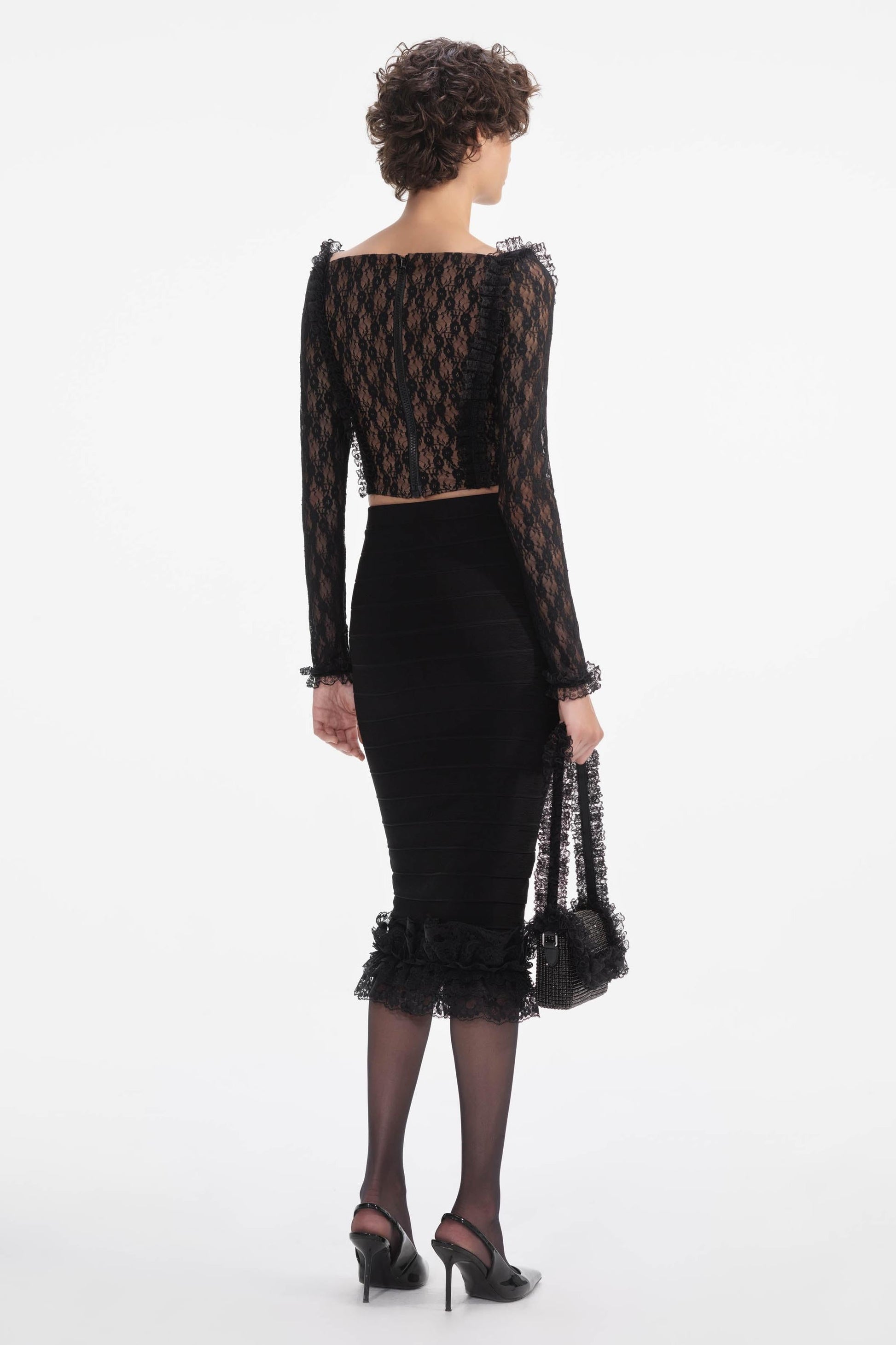 Effortlessly exude elegance and sophistication with our Meghn Lace Ruffle Top. Crafted from luxurious lace, this top features delicate ruffles that add a touch of romance to any outfit. Perfect for a night out or a special occasion, this top will elevate your style and turn heads wherever you go.