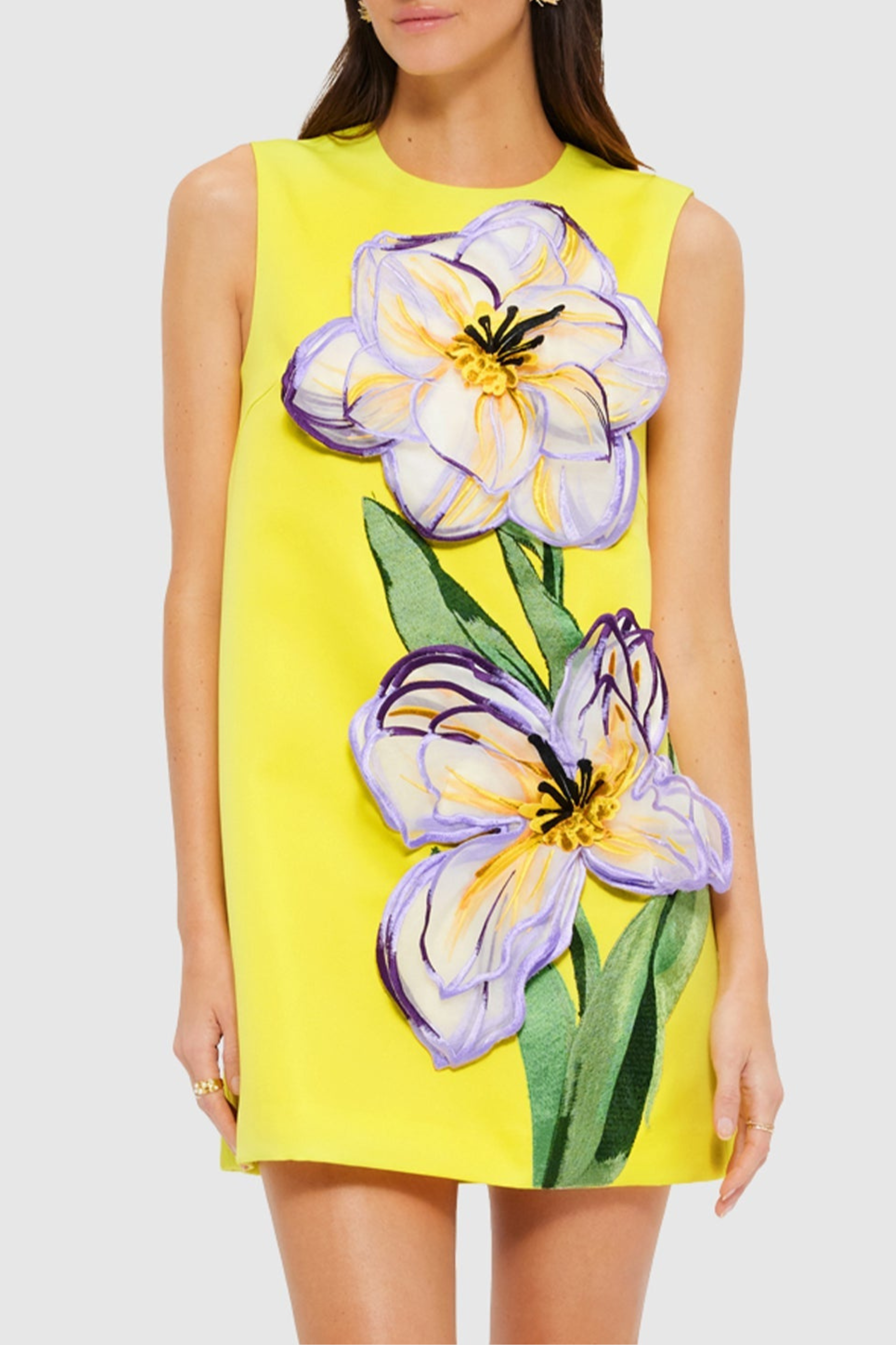 Mimoza Floral Appliqué Sleeveless Mini Dress - Yellow