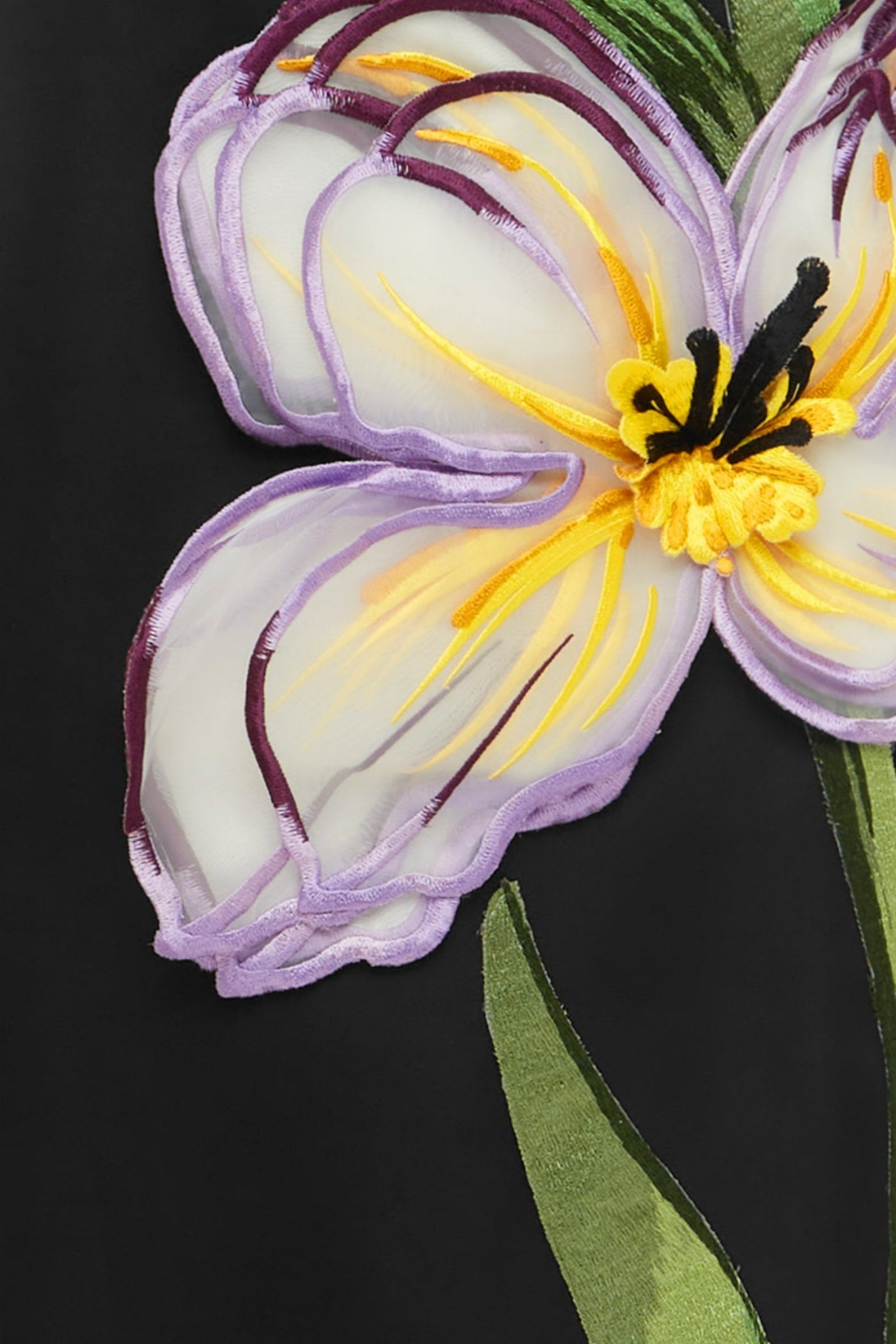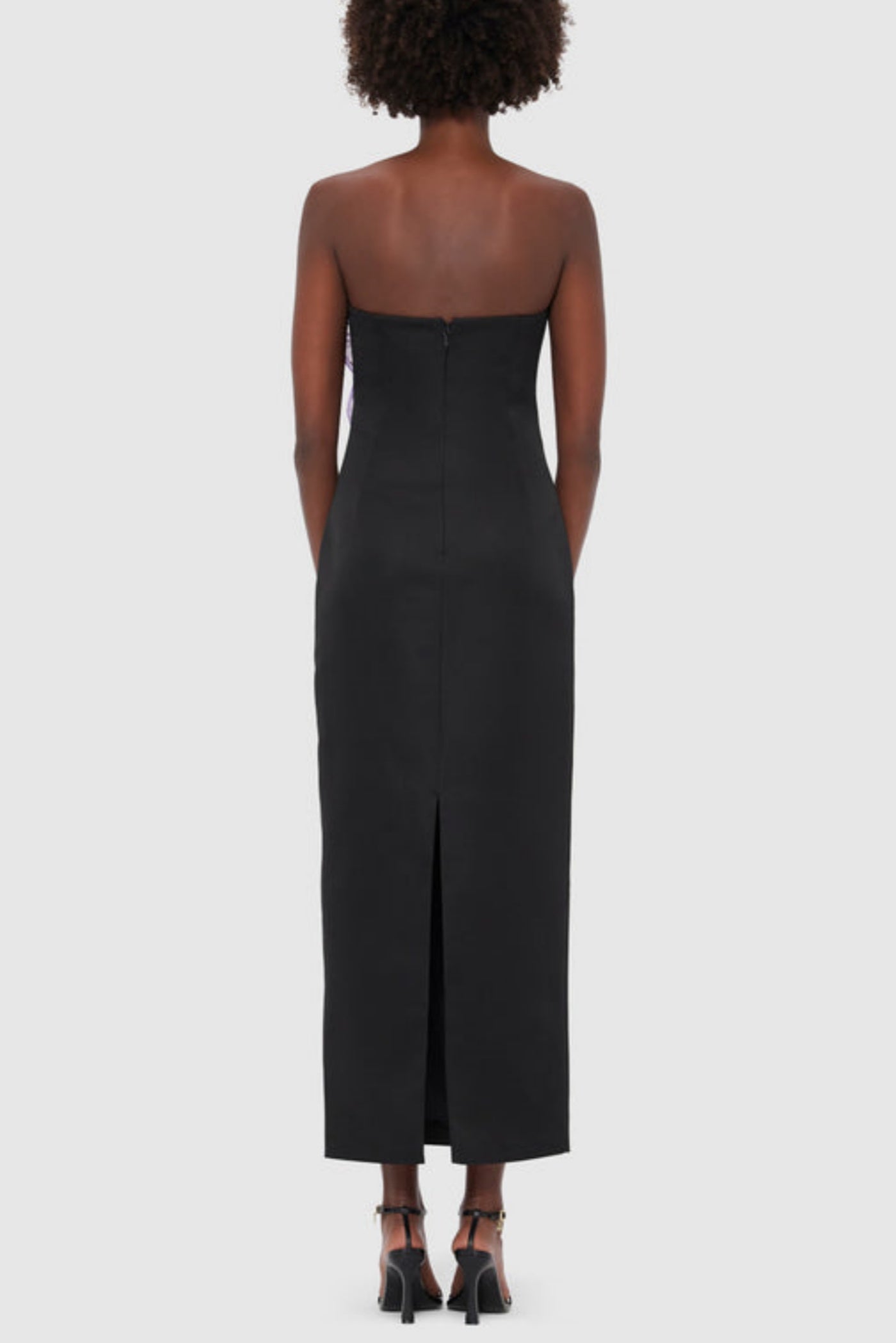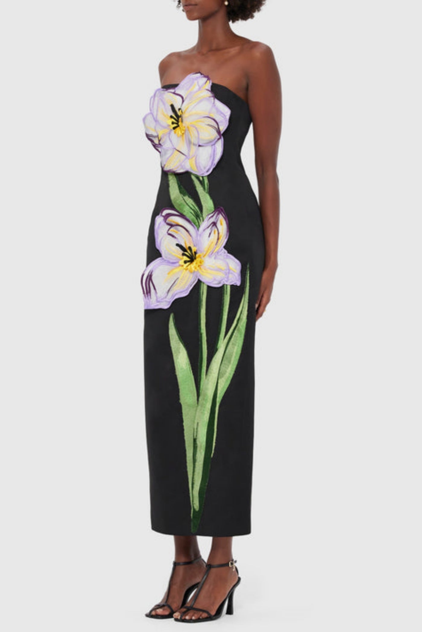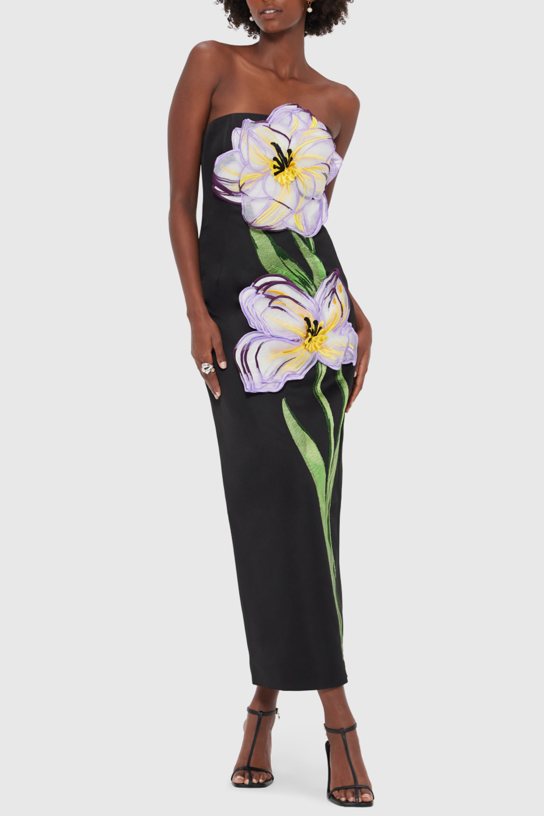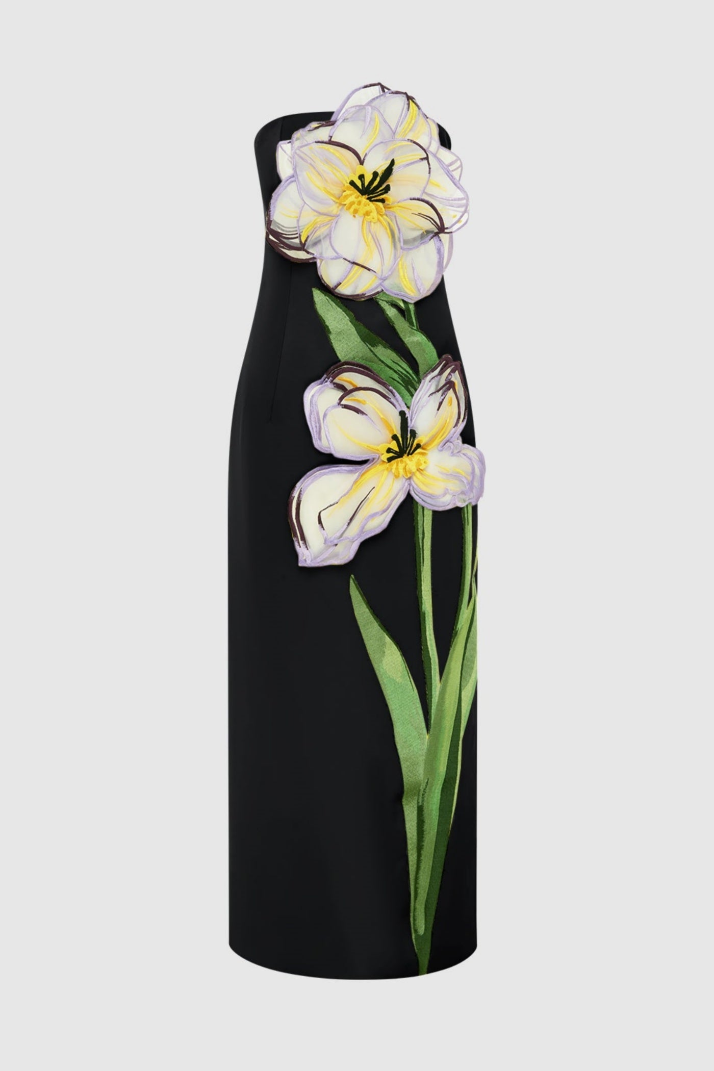 Mimoza Floral Appliqué Strapless Midi Dress - Black