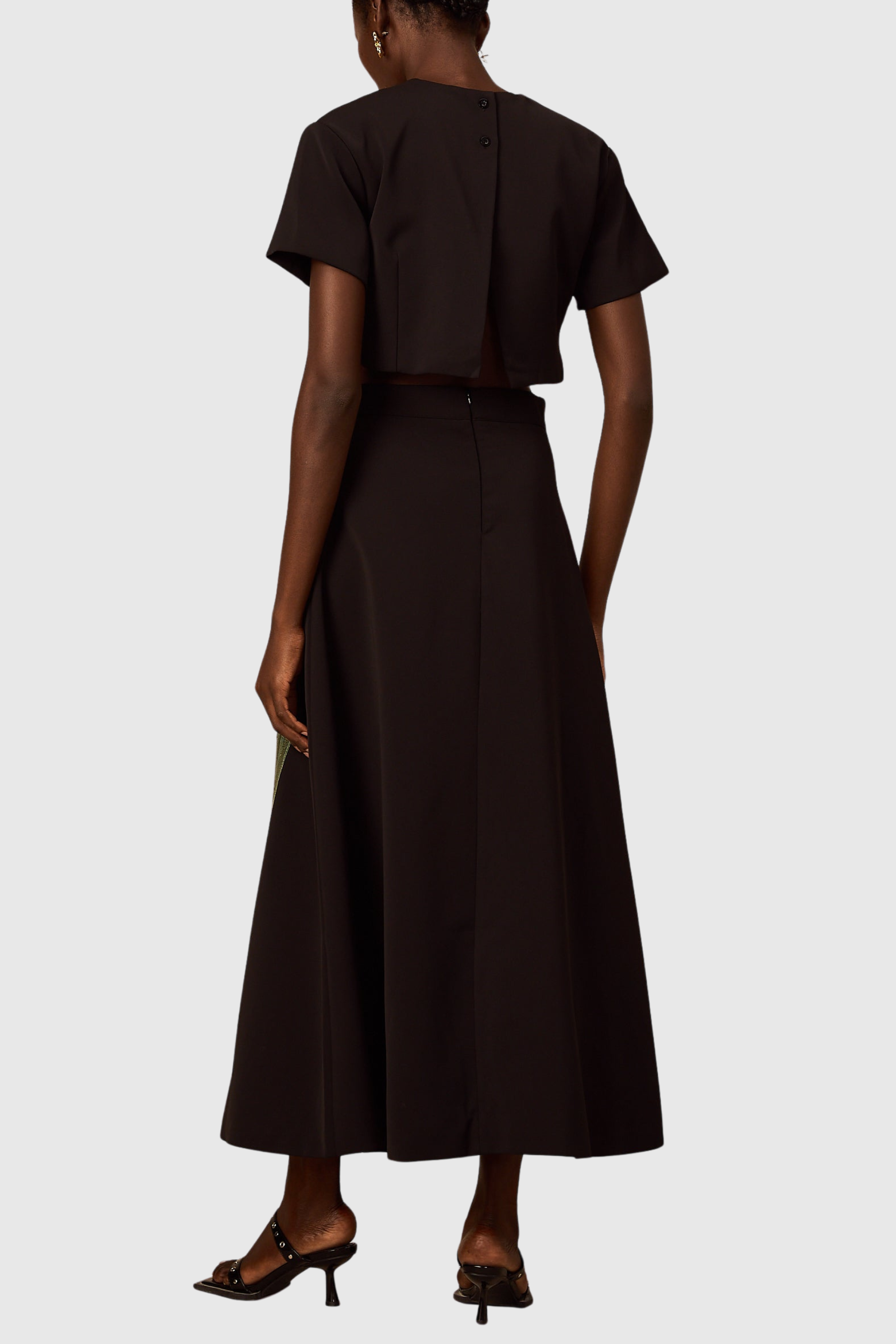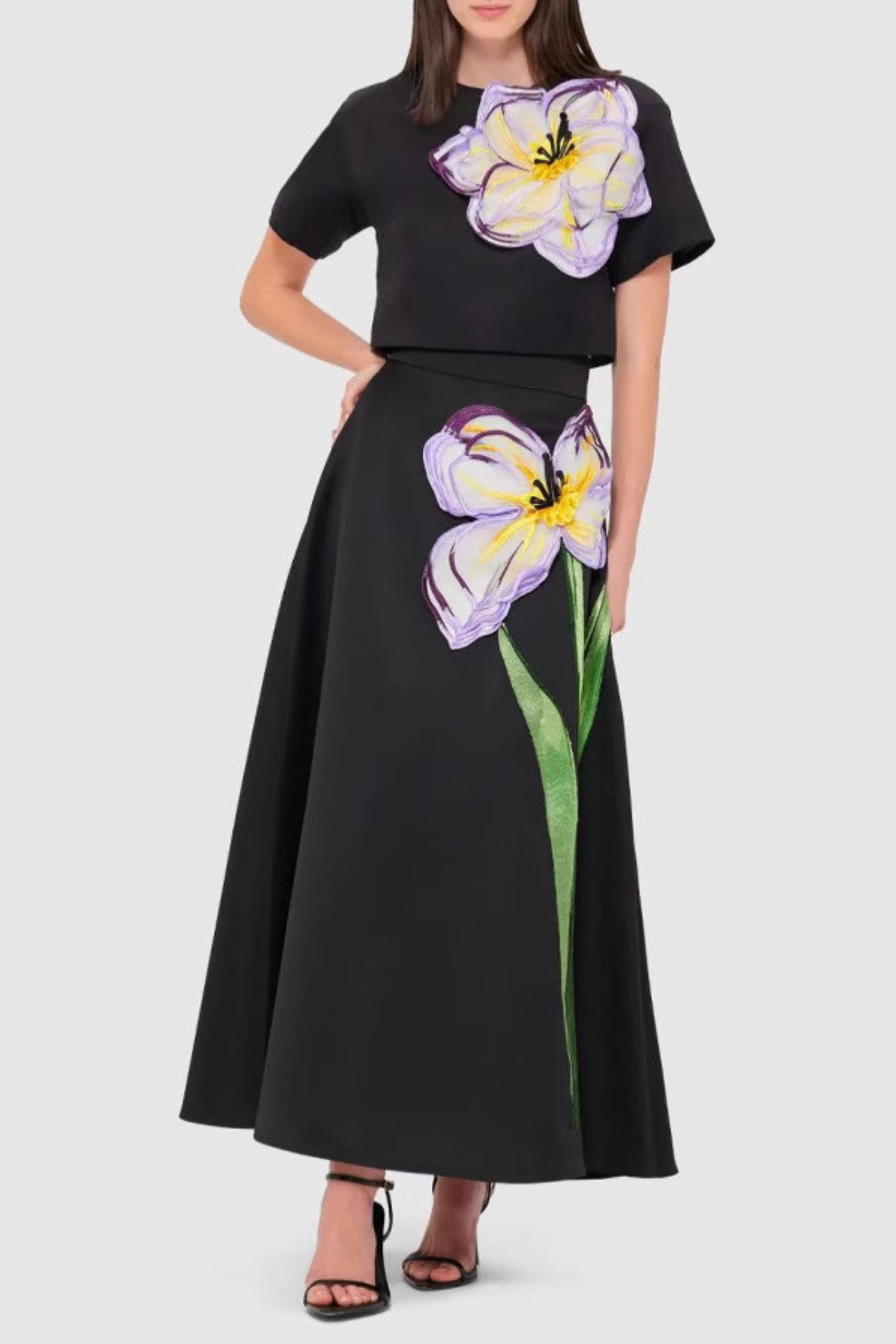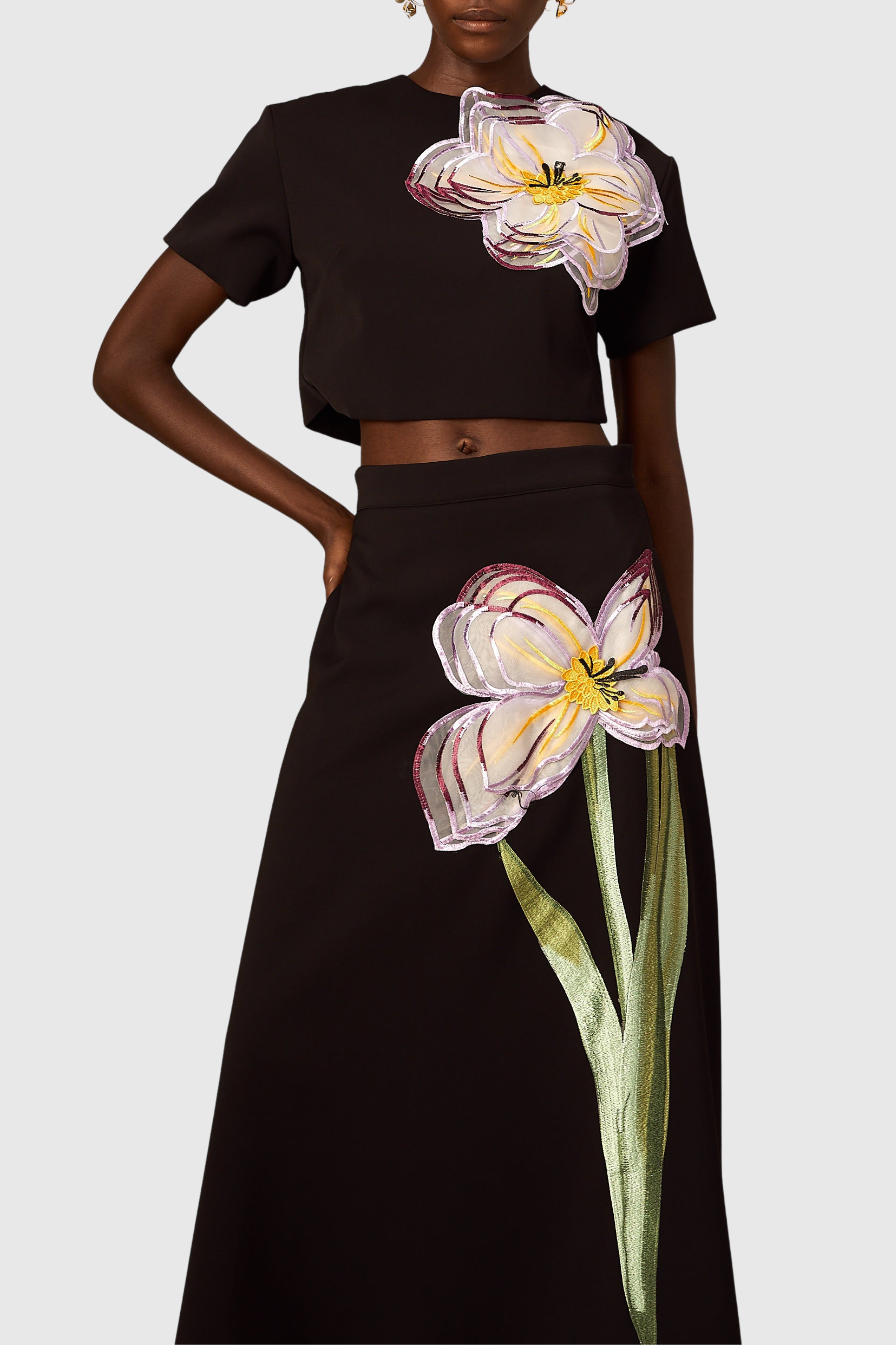 Elevate your wardrobe with the Mimoza Floral Appliqué Two Piece Set in black. This elegant ensemble features delicate floral appliqués that add a refined touch to its sophisticated design. Perfect for occasions where style and grace are paramount, the set offers a harmonious blend of comfort and chic appeal. Embrace timeless elegance with this beautifully crafted two-piece that effortlessly enhances your presence.