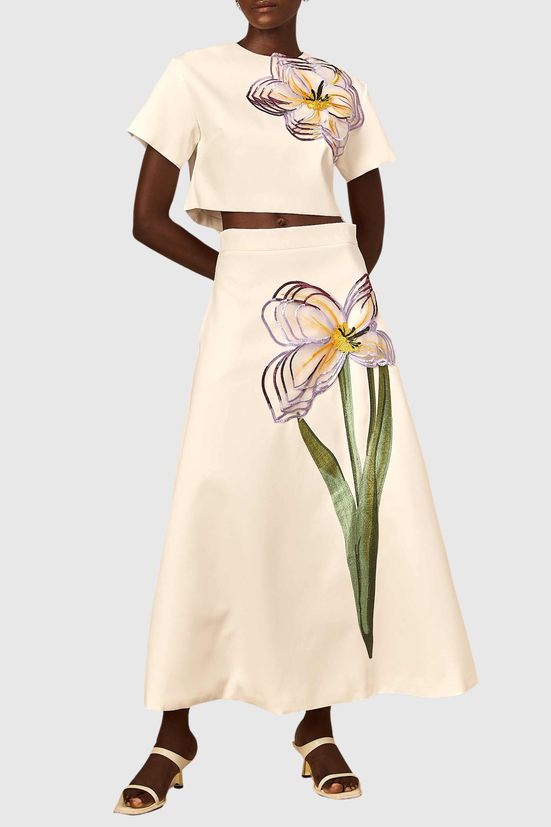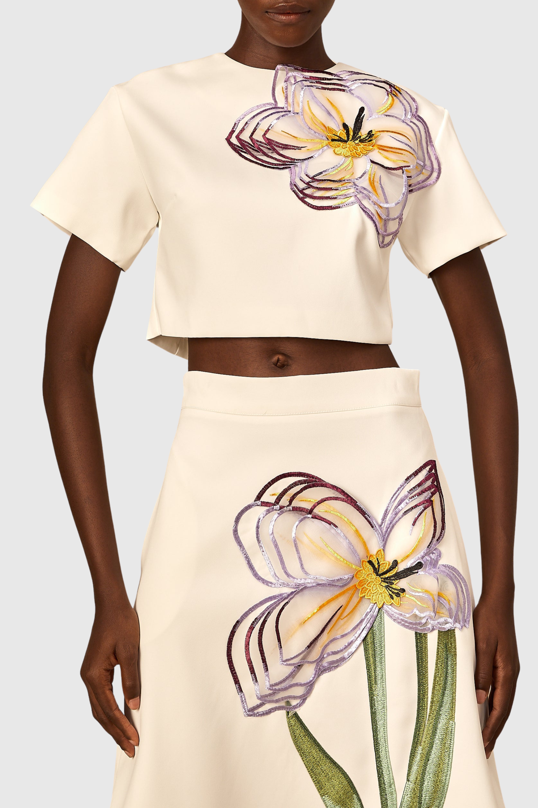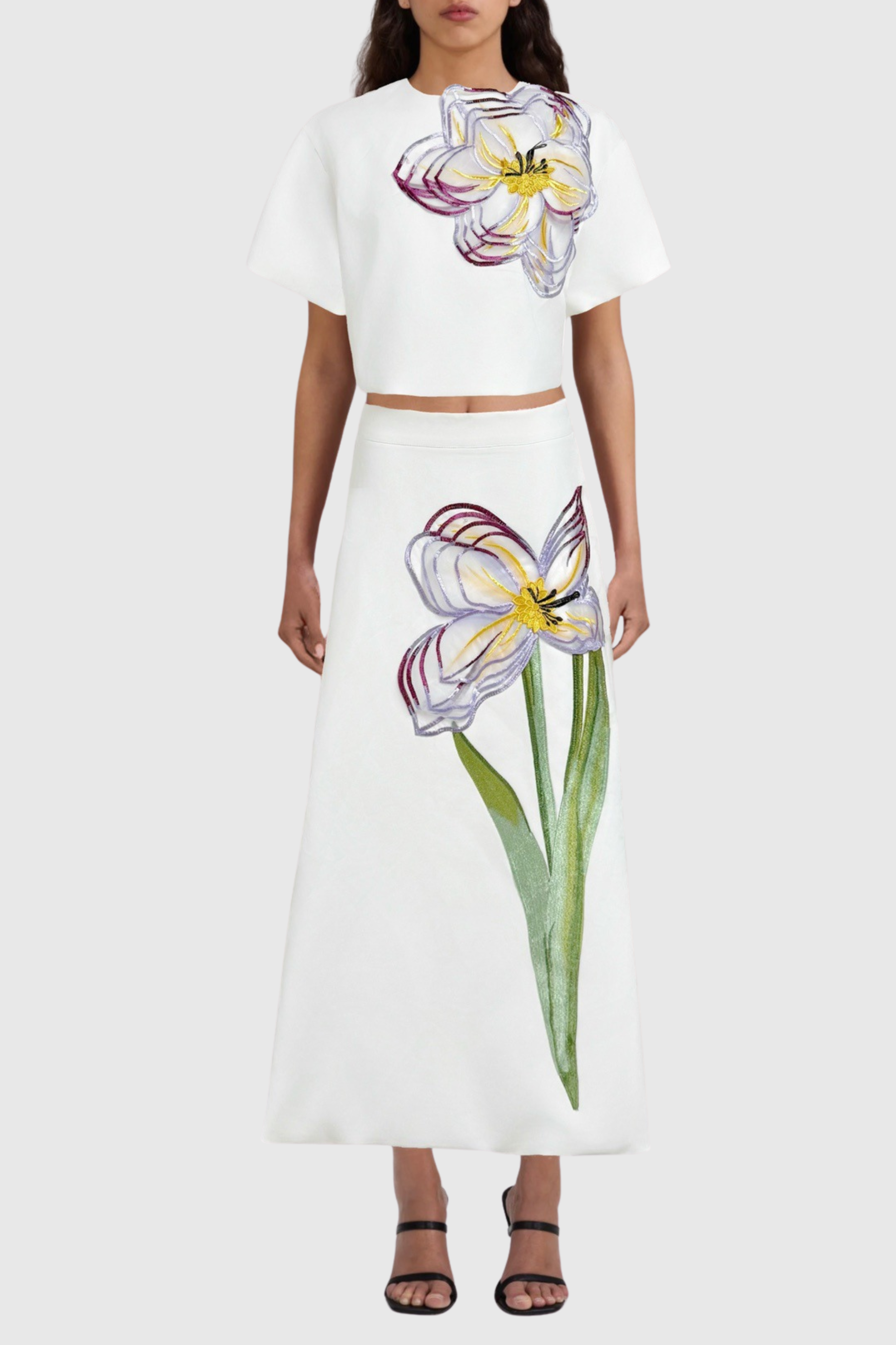 Mimoza Floral Appliqué Two Piece Set - White