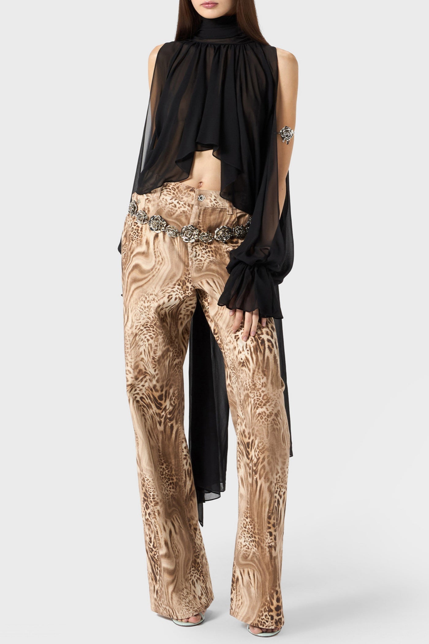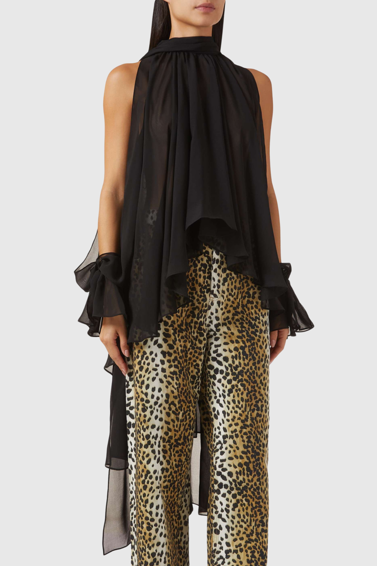 Indulge in luxury with our Mistee Asymmetric Slit-sleeve Blouse in black. The unique asymmetric design and slit-sleeves add a touch of sophistication to any outfit. Made with premium materials, this blouse exudes elegance and exclusivity, a must-have for any fashion-forward individual. Elevate your wardrobe with this timeless piece.