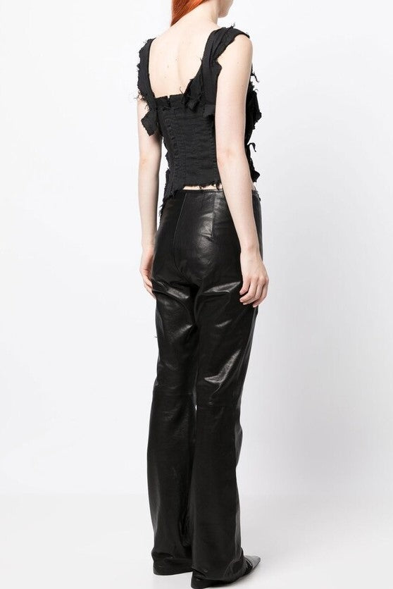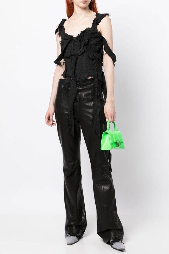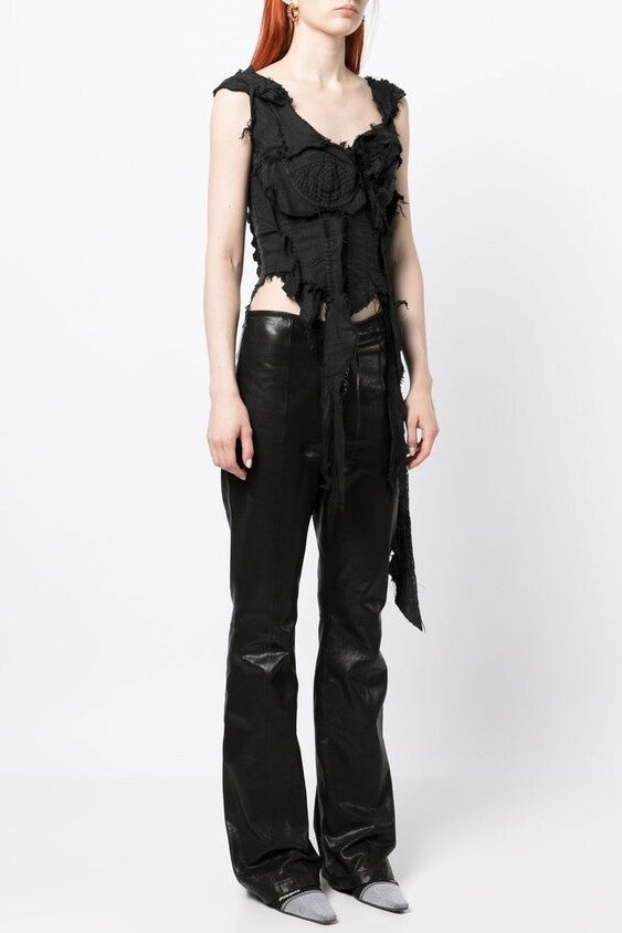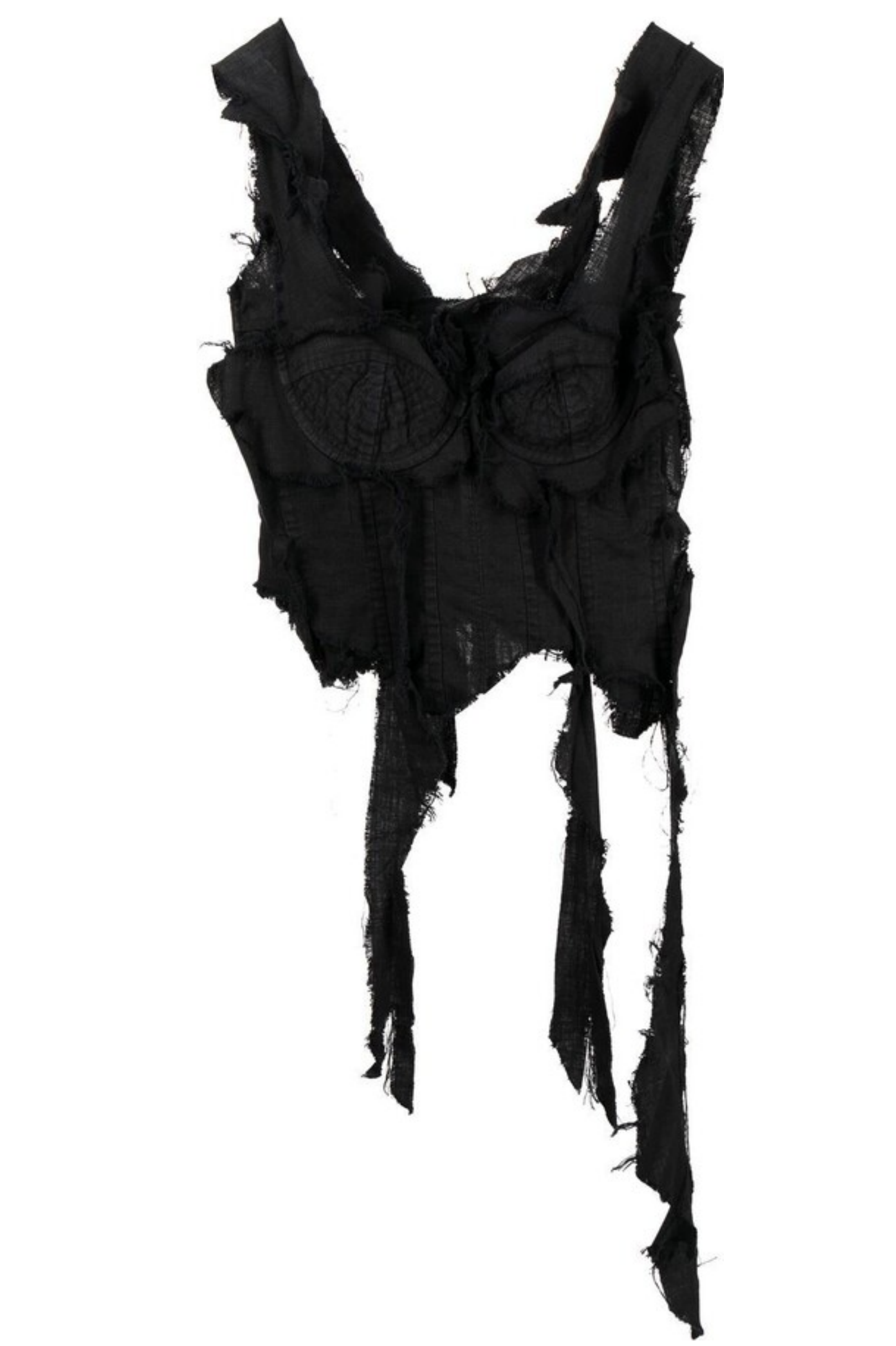 Take a daring step with the Noela Asymmetric Fringed Corset in Black. Experience the bold and dynamic design featuring striking fringe details that will surely make a statement. Embrace the distressed-effect of this bold and edgy corset, complete with playful fringed detailing. Conquer your next fashion statement and bring an adventurous flair to any outfit. Dare to be different with Noela!