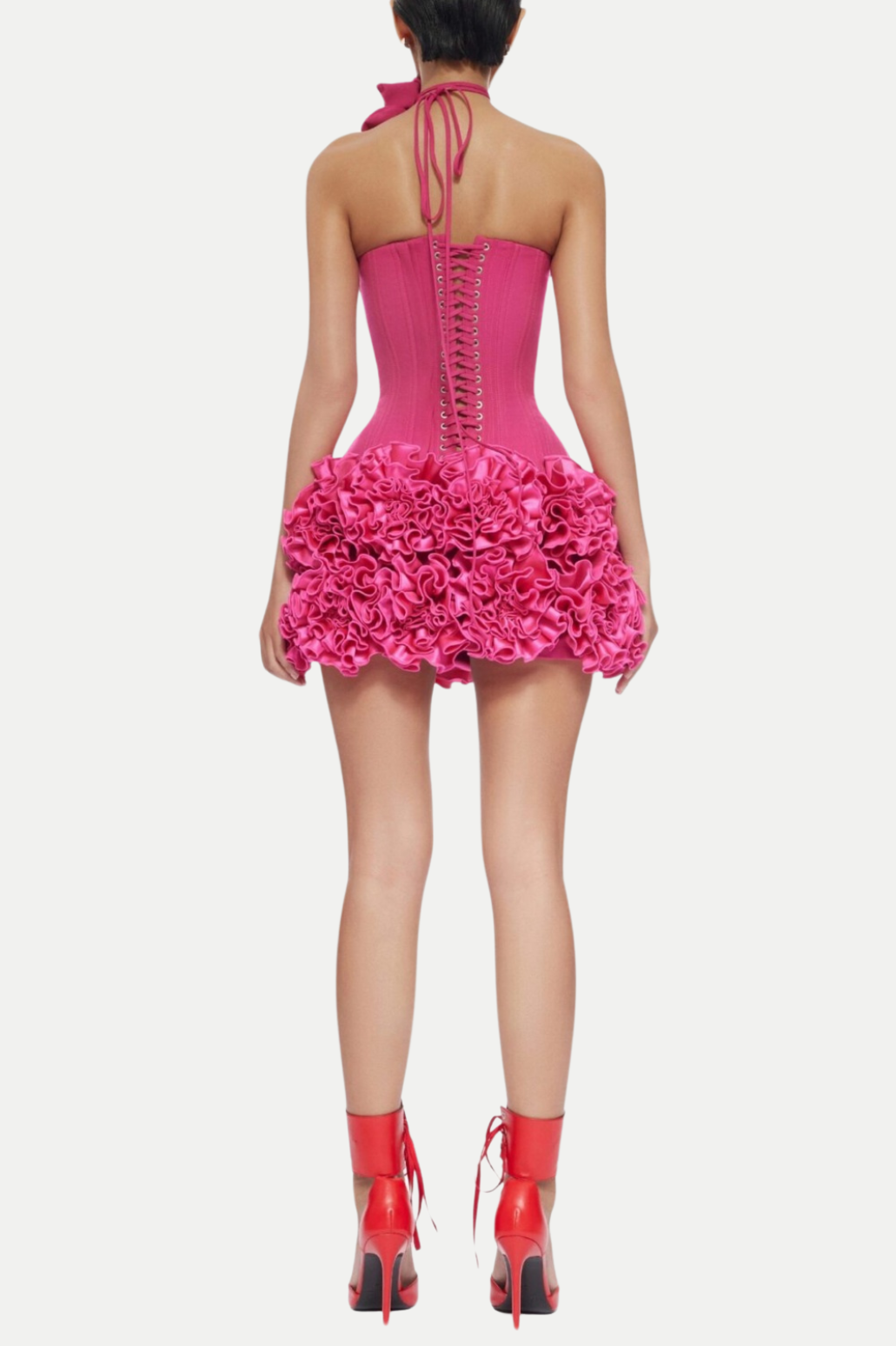Indulge in the sophisticated and exclusive style of the Nuala Floral Lace Up Two Piece Set. This luxurious set features a flora design and a lace-up detail, adding a sensual touch to your look. Perfect for a night out or a special occasion, this set will make you feel elegant and glamorous.