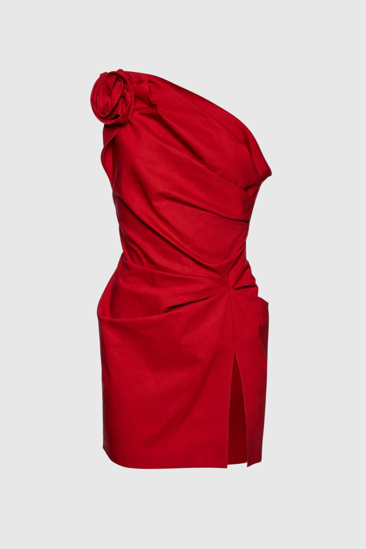 Oayena Floral Appliqué One Shoulder Mini Dress