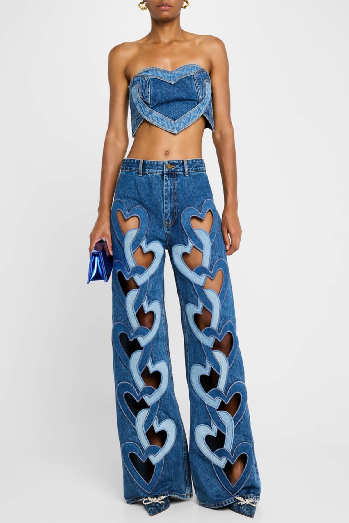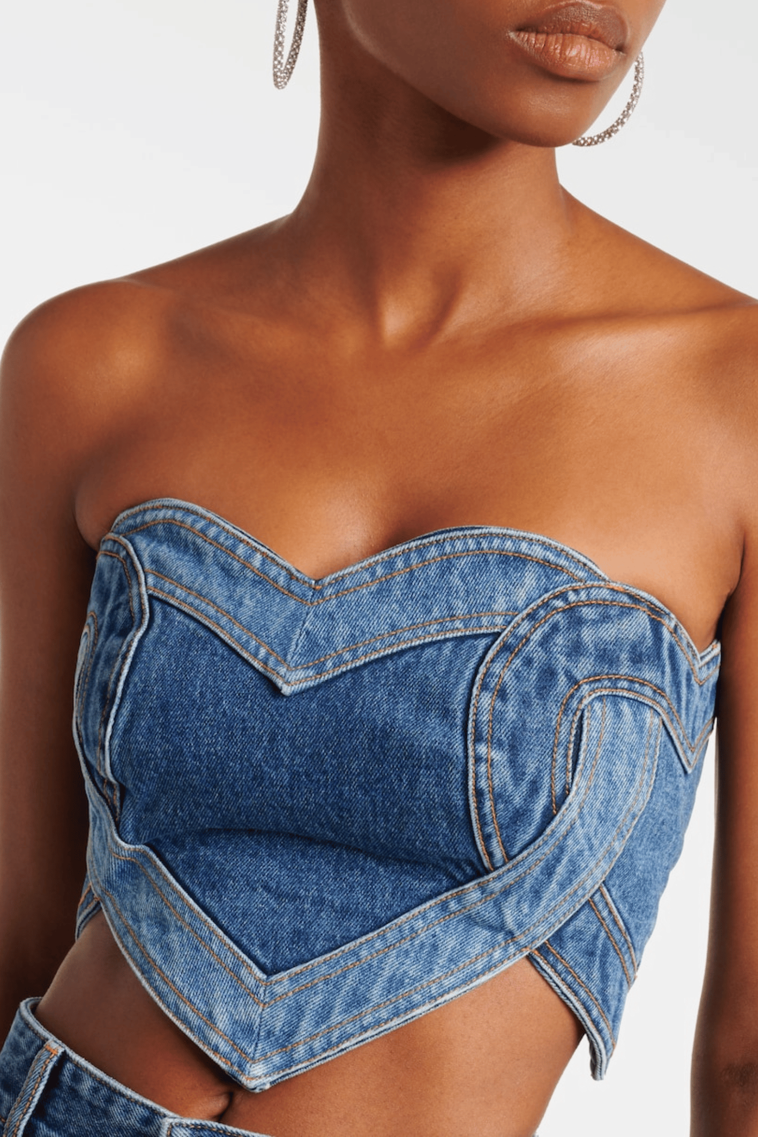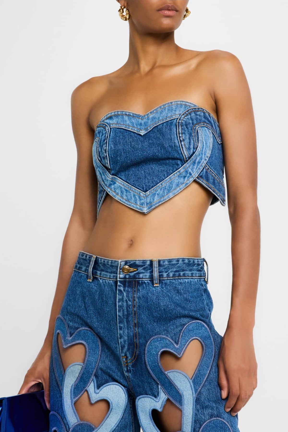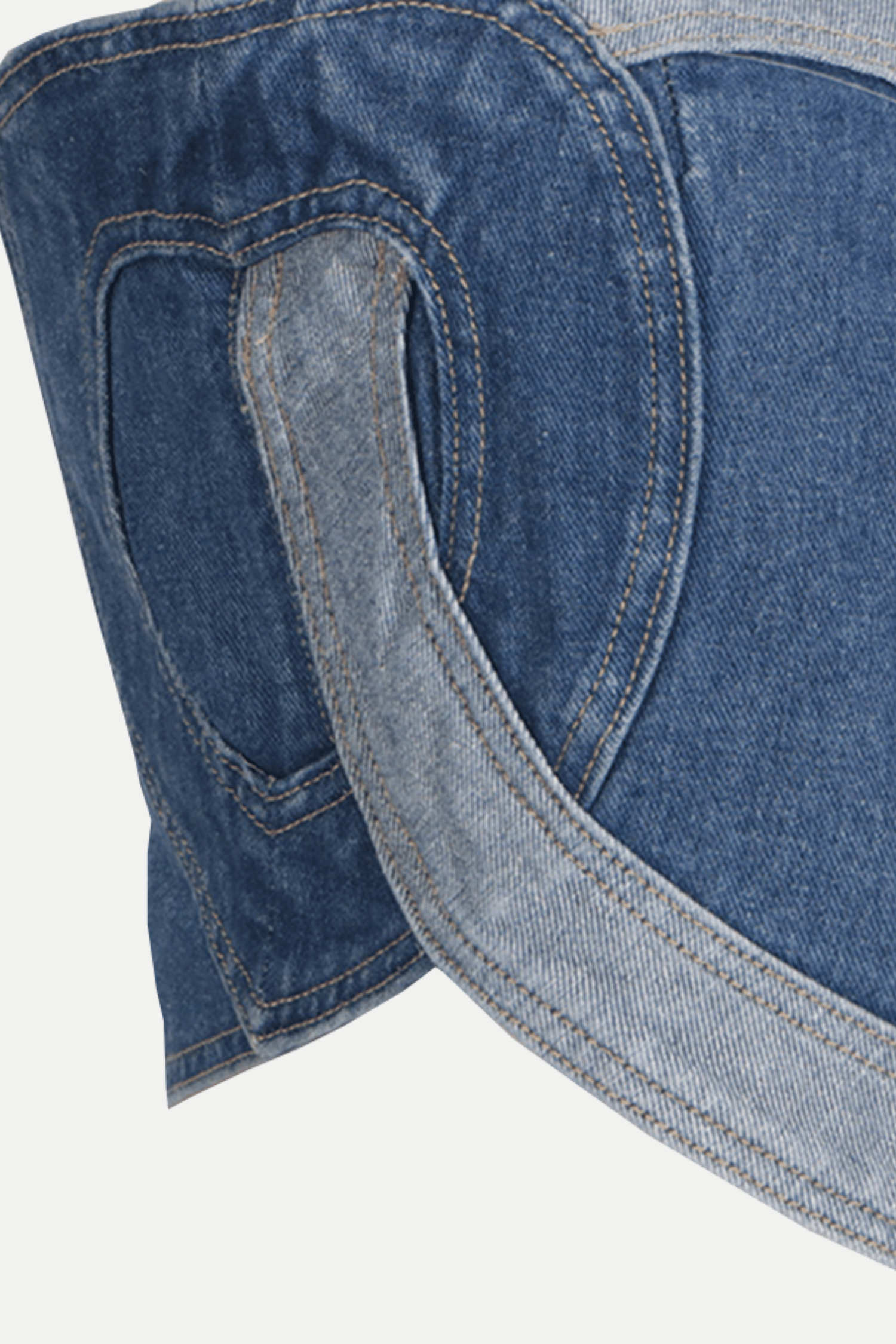 Take on any adventure with the bold and daring Odalys Heart Denim Top. Made with high-quality denim, this top exudes strength and confidence. With its unique design, it's sure to make a statement and add a touch of daring to any outfit. Conquer the world in style with Odalys.