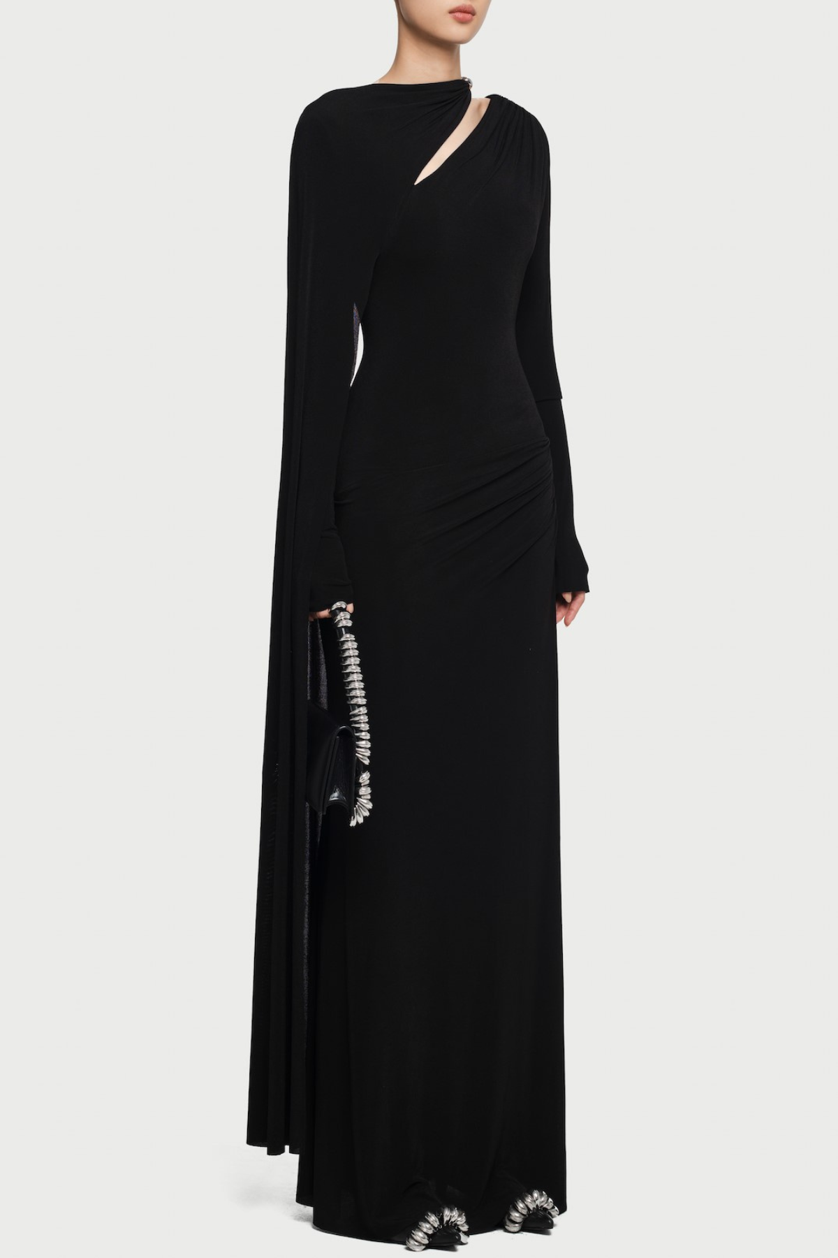 Ozzie Asymmetrical Cape-sleeve Cutout Maxi Dress - Black