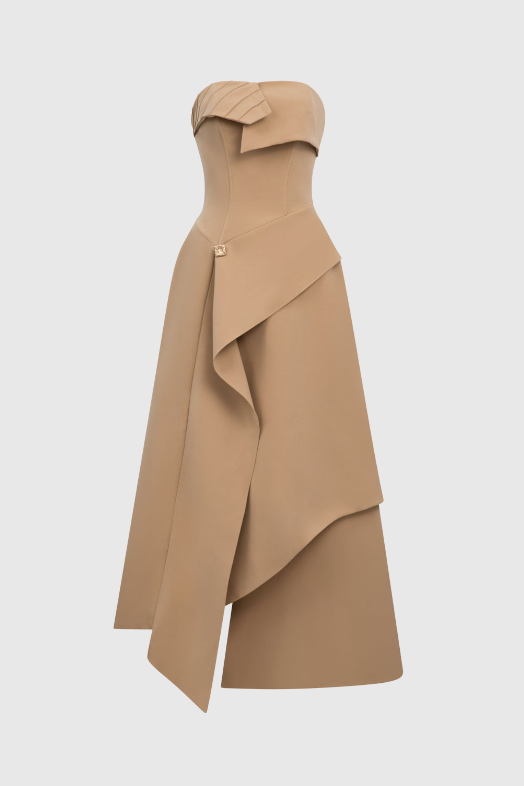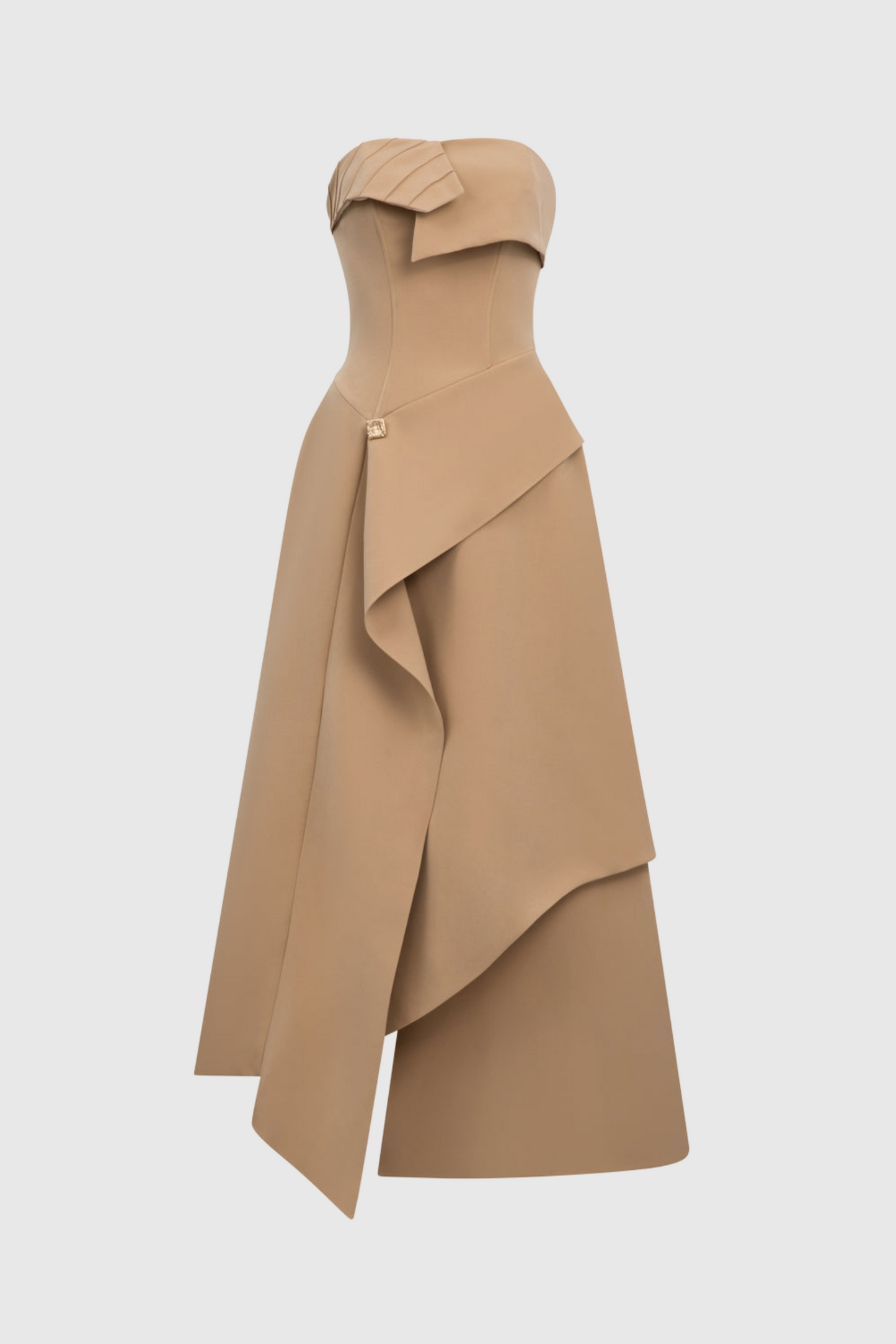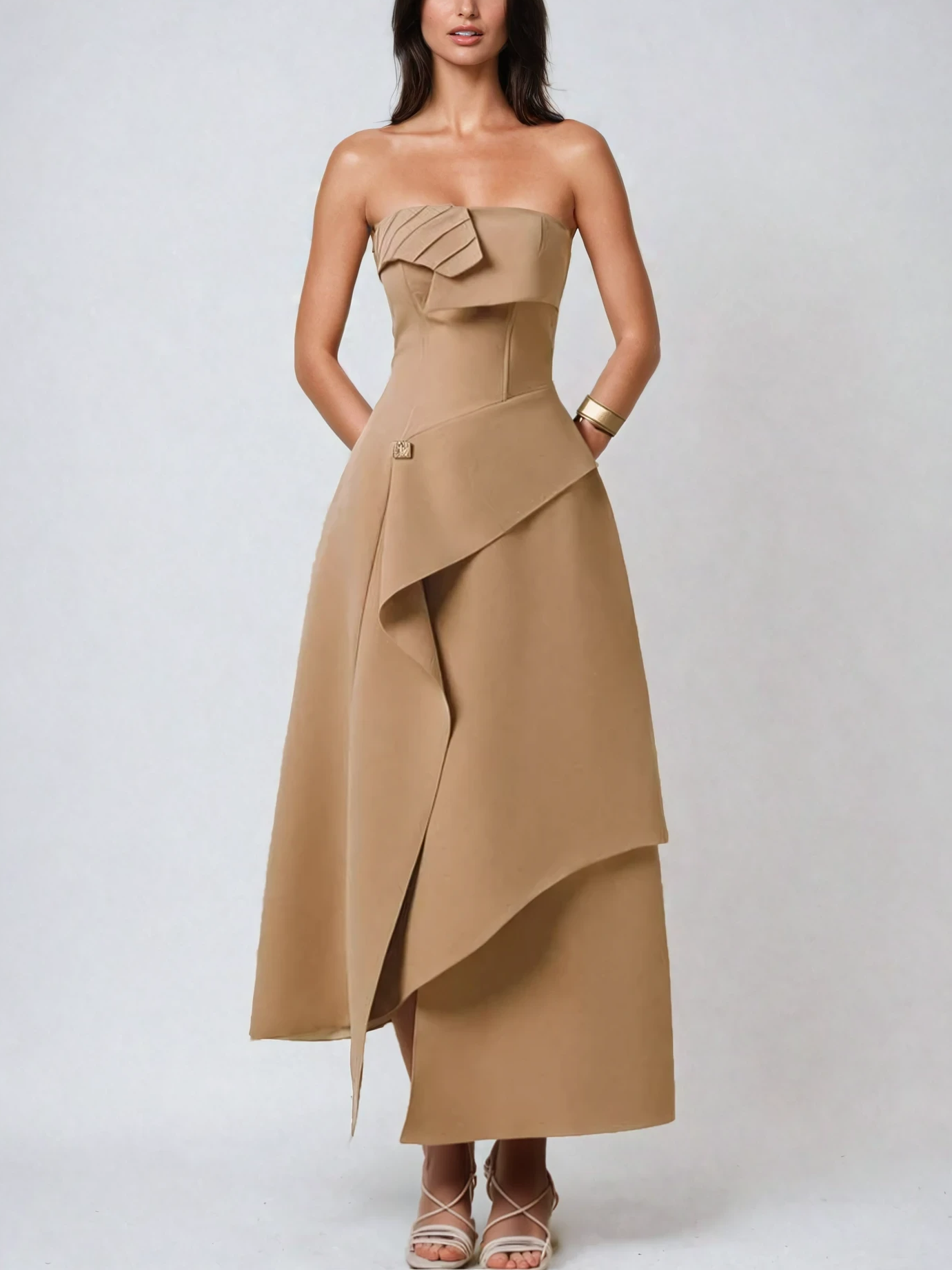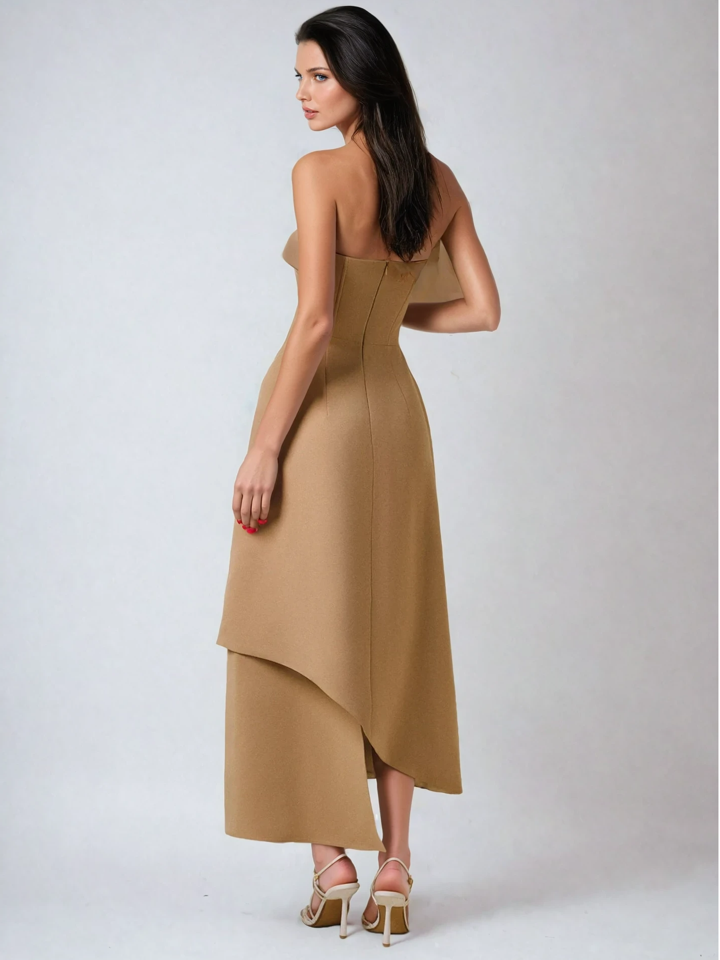 Elevate your wardrobe with the Pavlo Asymmetrical Strapless Midi Dress, a refined choice for elegant occasions. Its sleek strapless design and asymmetrical hem create a modern silhouette that flatters every figure. Crafted to offer both style and comfort, this midi dress is perfect for making a graceful statement at any event.