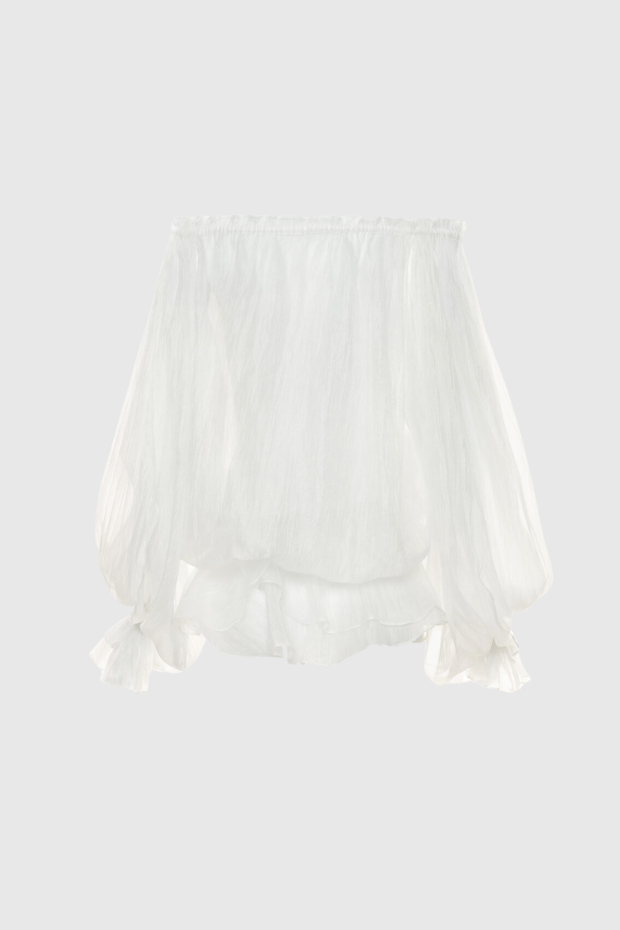 Pineda Off Shoulder Ruched Ruffle Blouse - White