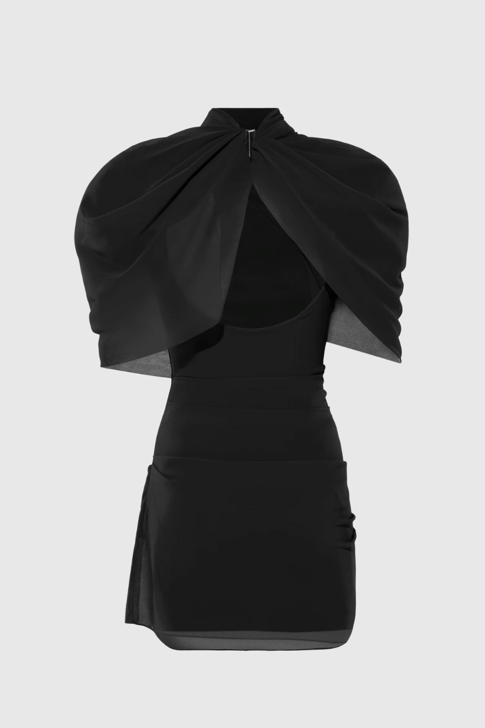 Priscilla Draped Mesh Mini Dress - Black