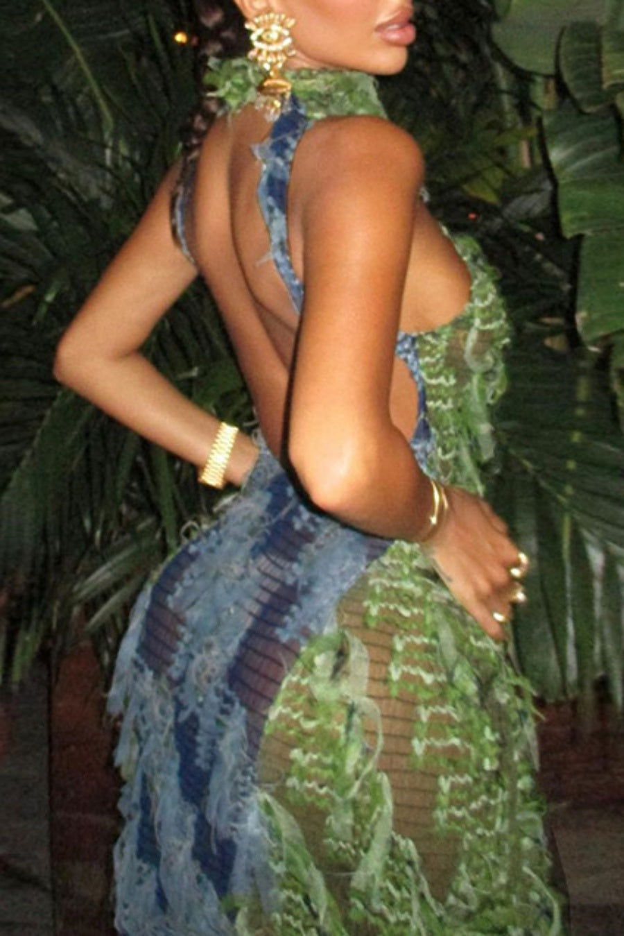 Rona Cutout Backless Ripped Midi Dress
