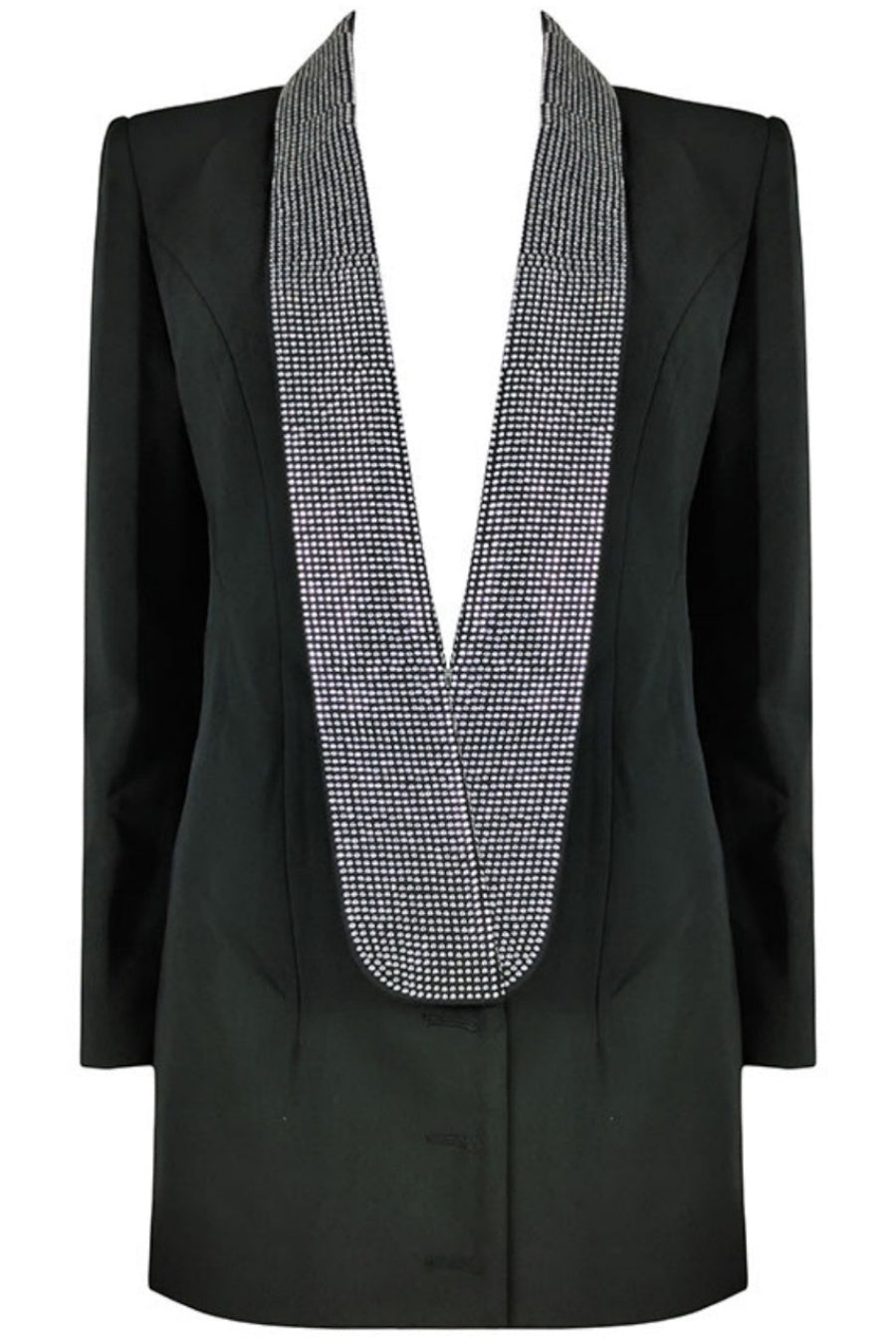 Scarlett Crystal Embellished Cutout Blazer Dress - Black