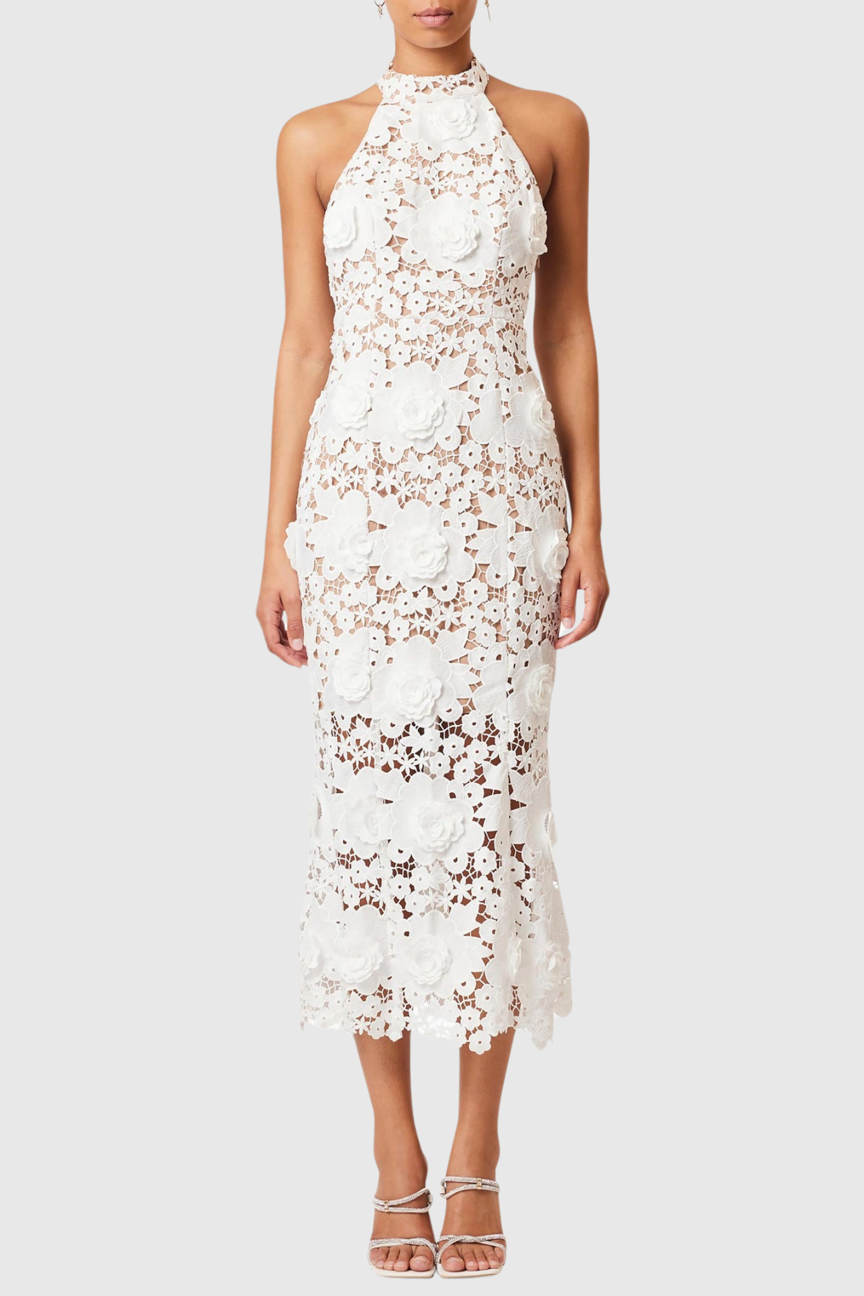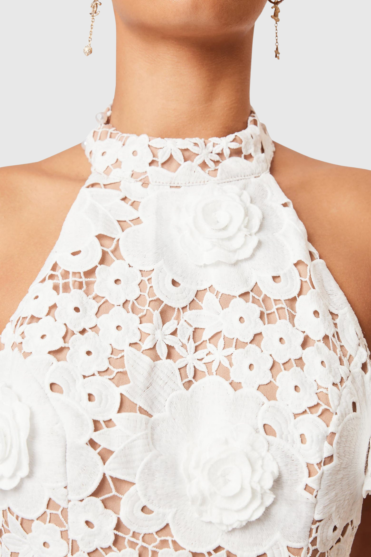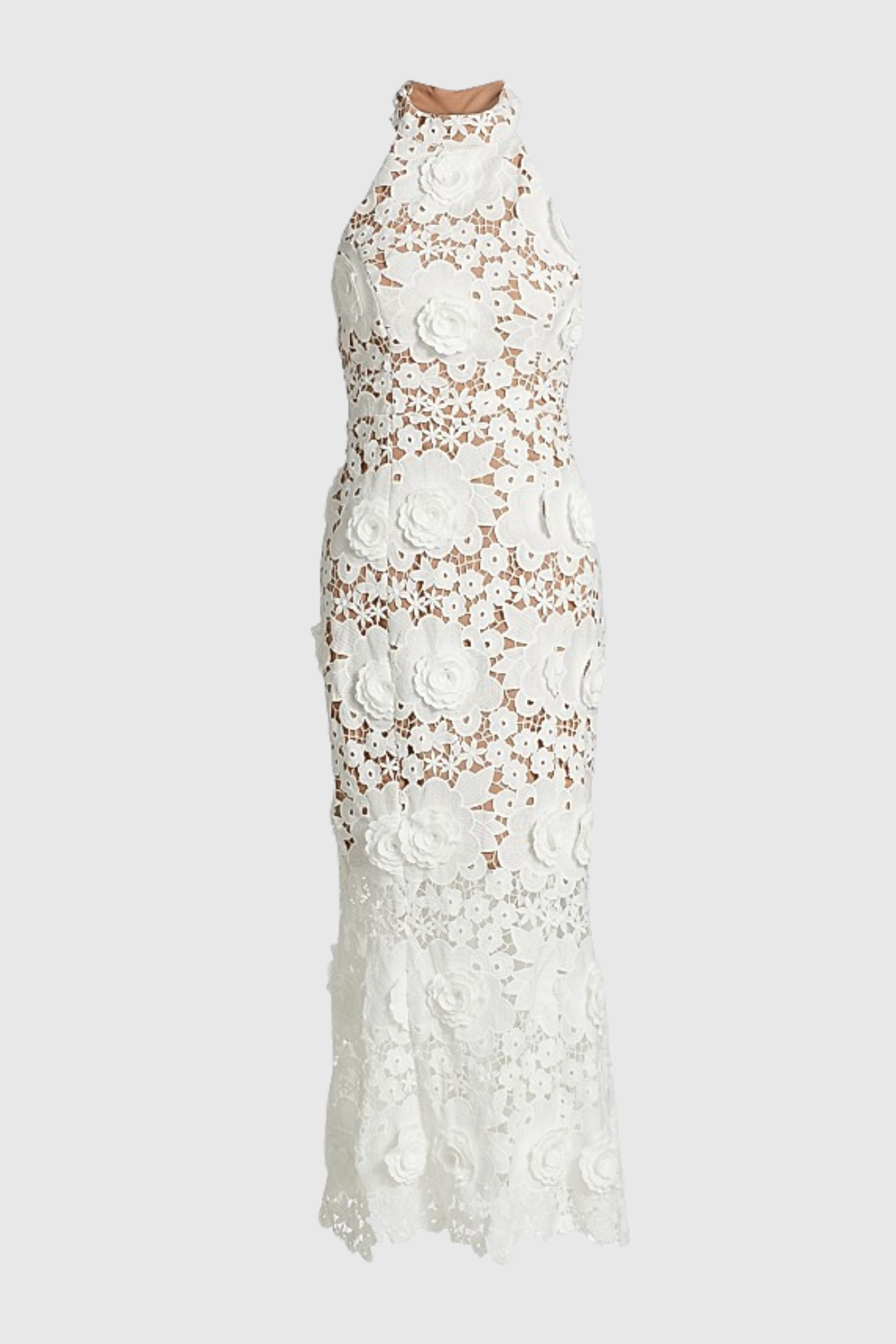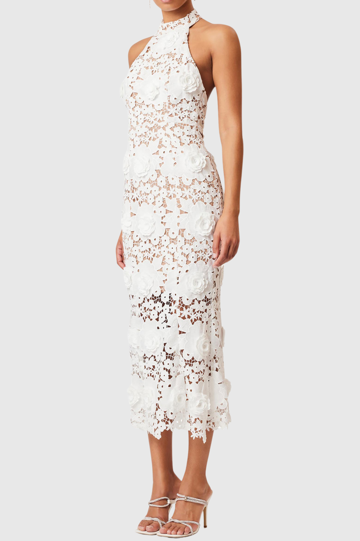Shyheim Floral Appliqué Lace Halter Midi Dress