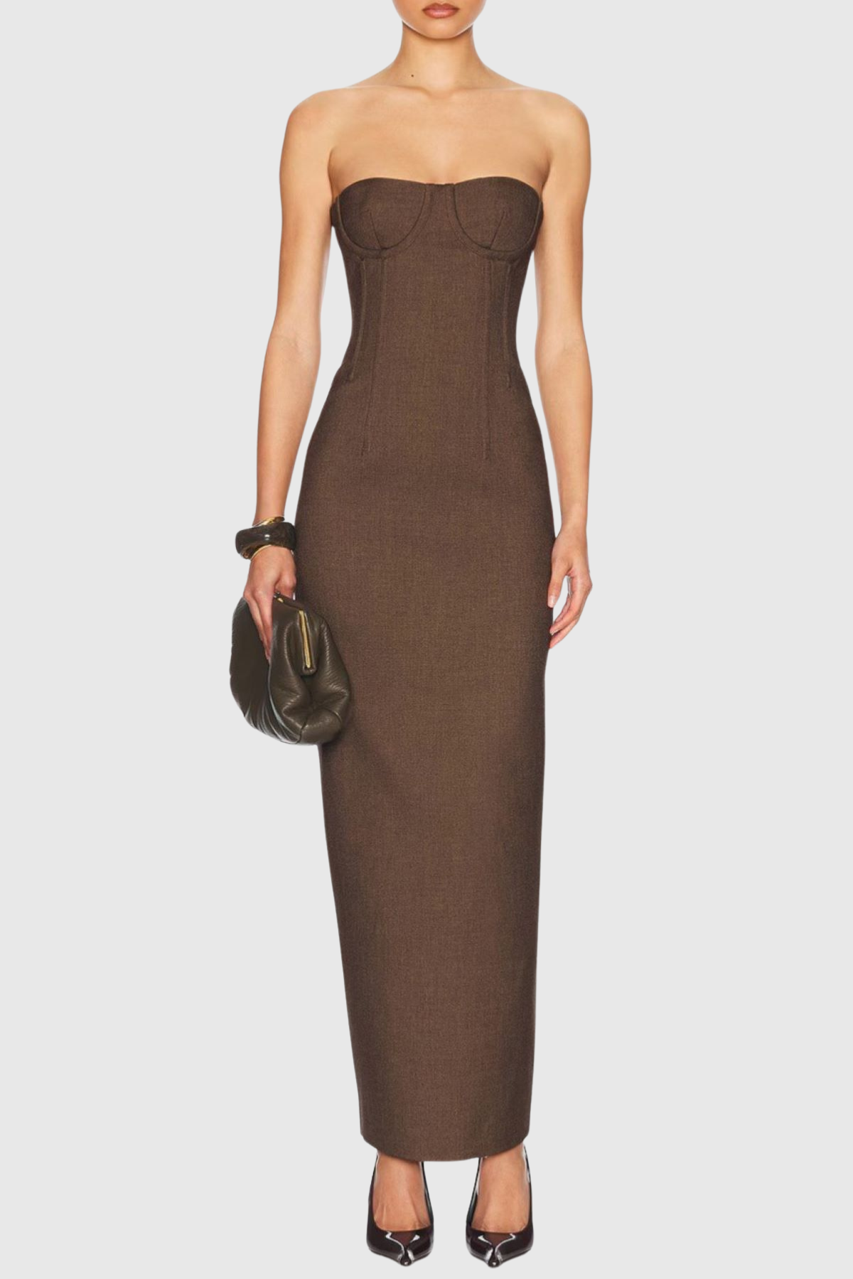 Elevate your evening ensemble with the Sylwia Strapless Maxi Bandage Dress. Expertly crafted to contour and flatter, its bandage design delivers a sleek, sculpted silhouette, while the strapless neckline highlights your shoulders with refined elegance. This maxi length offers a graceful flow, perfect for sophisticated occasions where style and confidence meet.