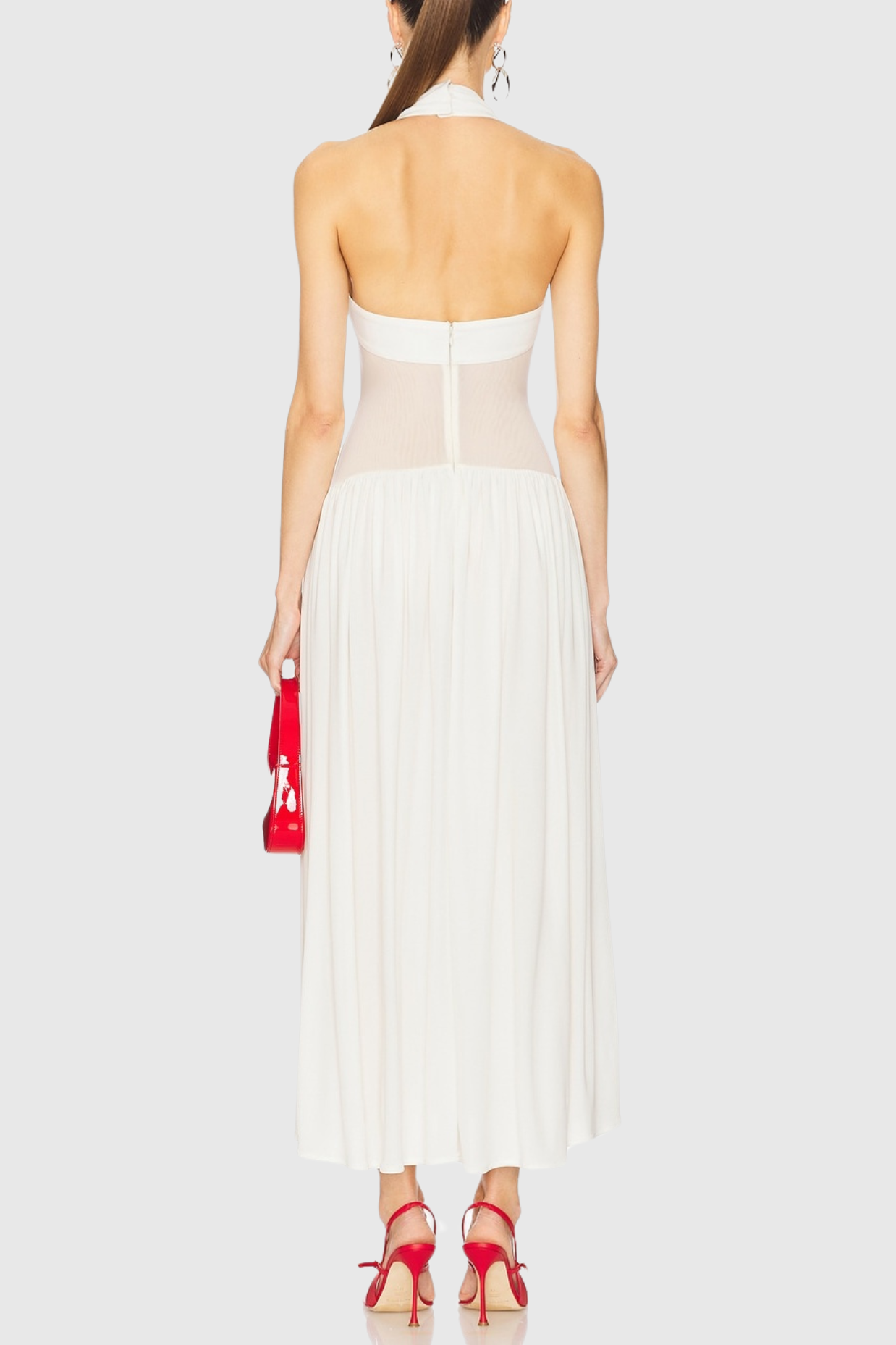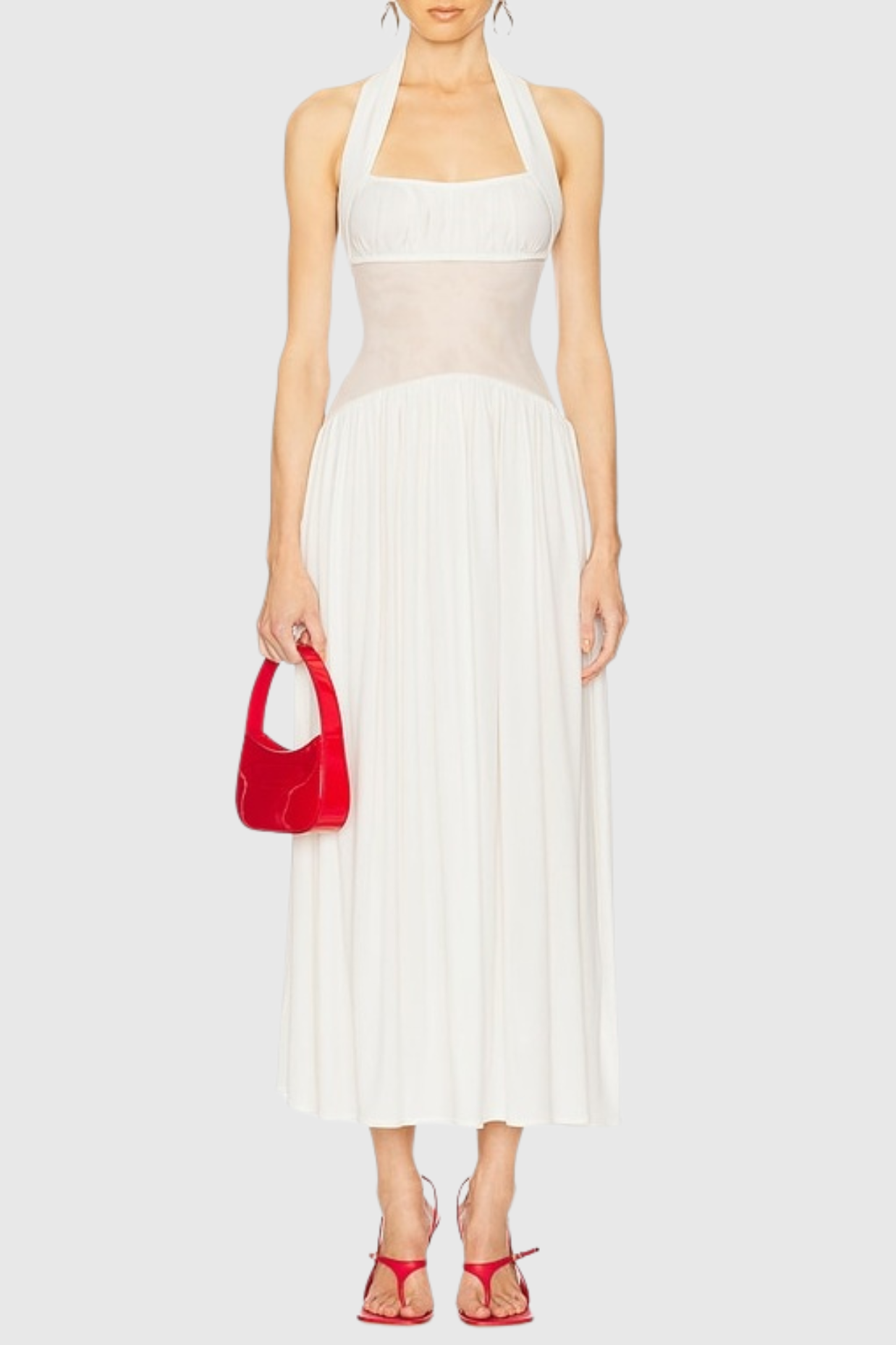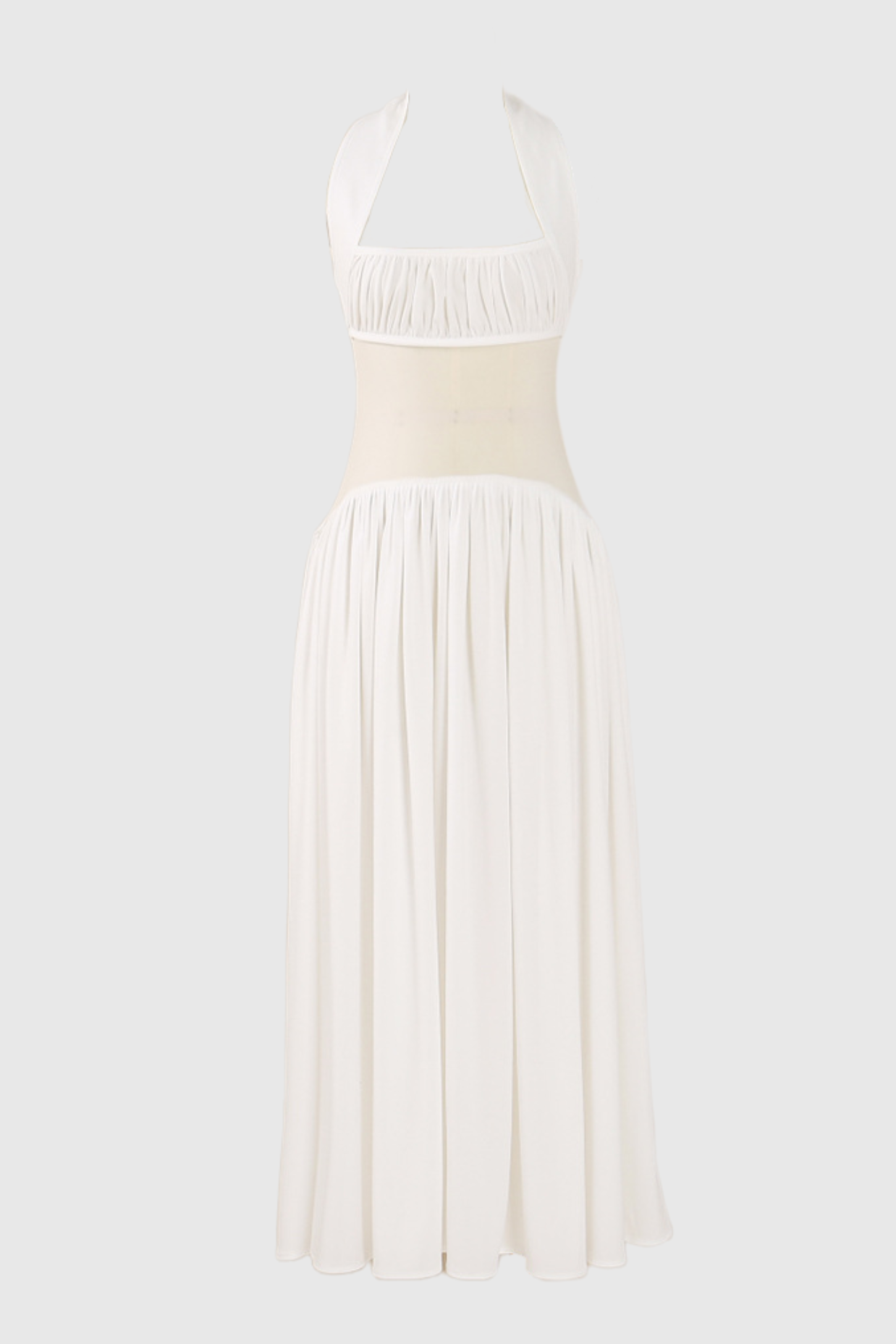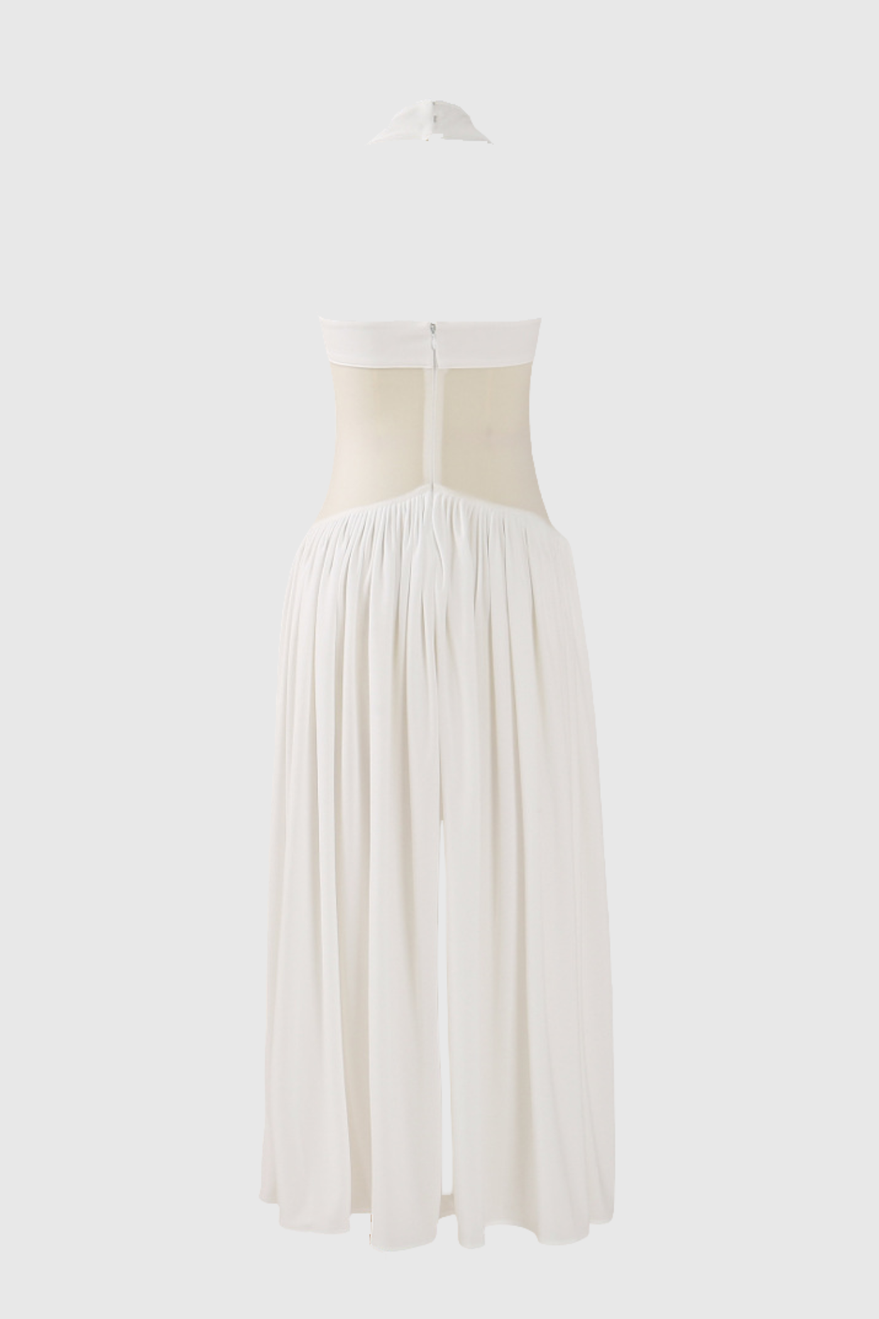 Elevate your evening attire with the Tameron Halter Mesh Ruffle Maxi Dress. This sophisticated silhouette features a flattering halter neckline, delicate mesh overlay, and cascading ruffles that create graceful movement with every step. Perfect for formal occasions when an unforgettable impression is essential.