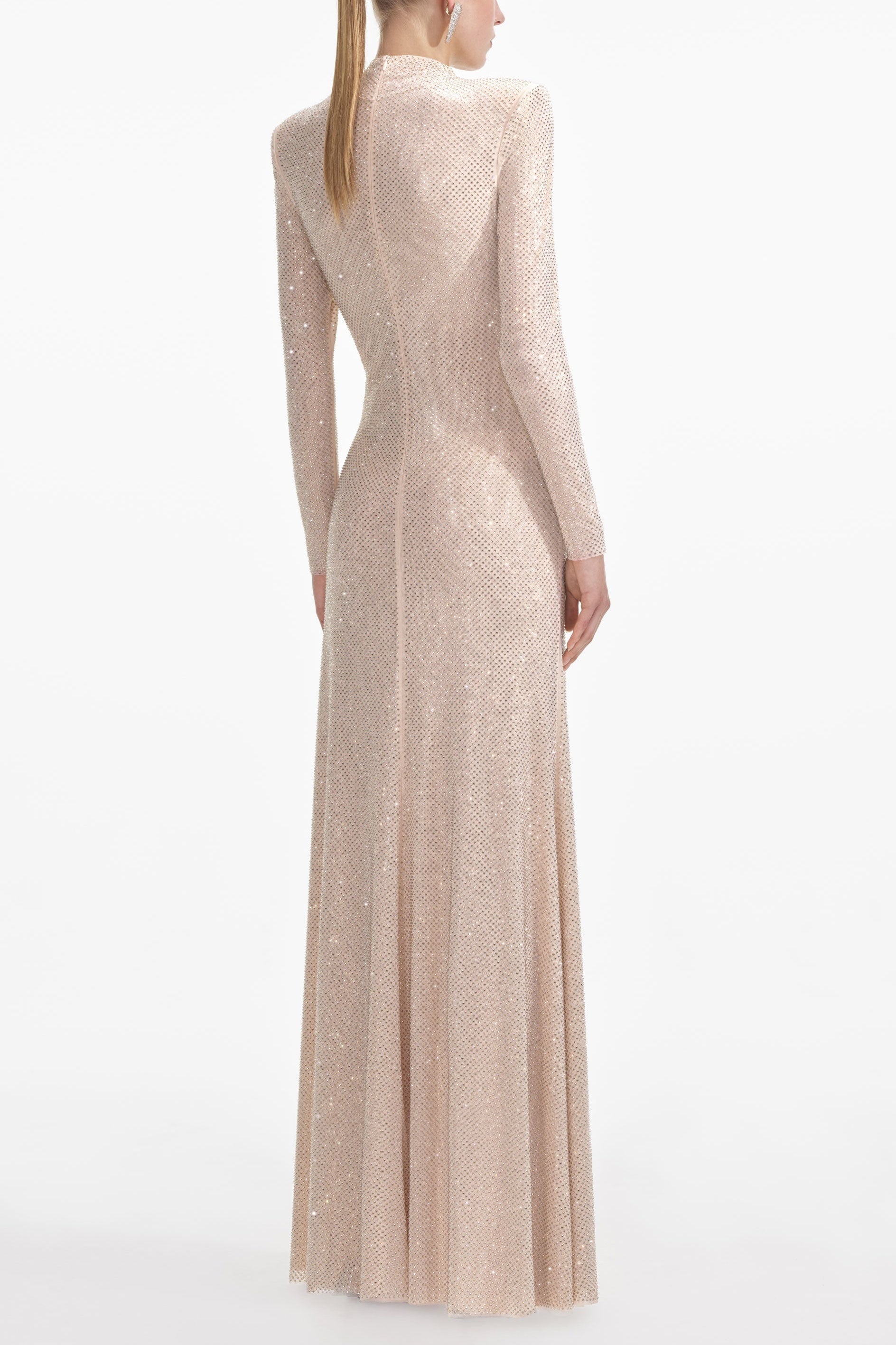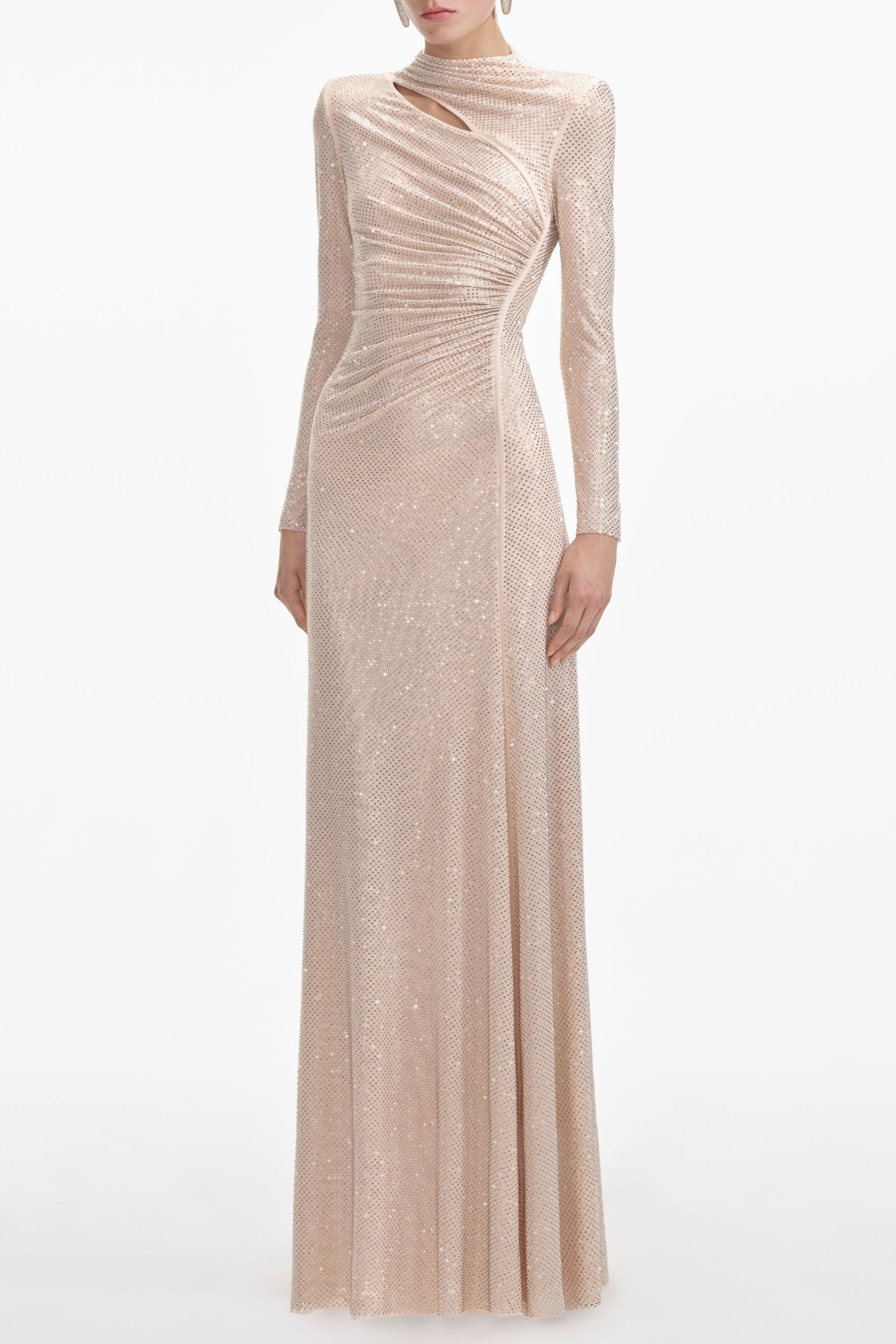 Tapac Rhinestone Cutout Mesh Maxi Dress - Apricot