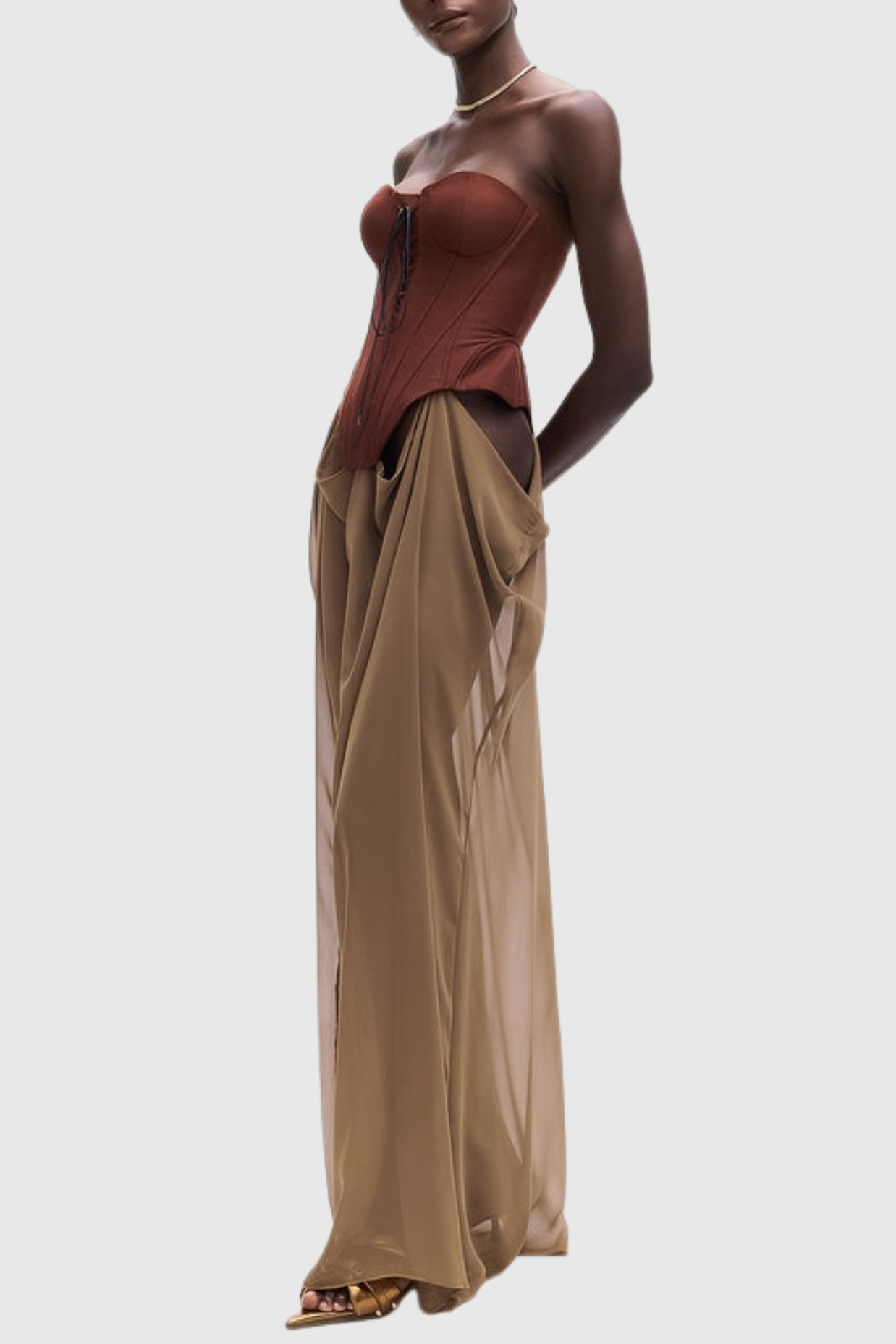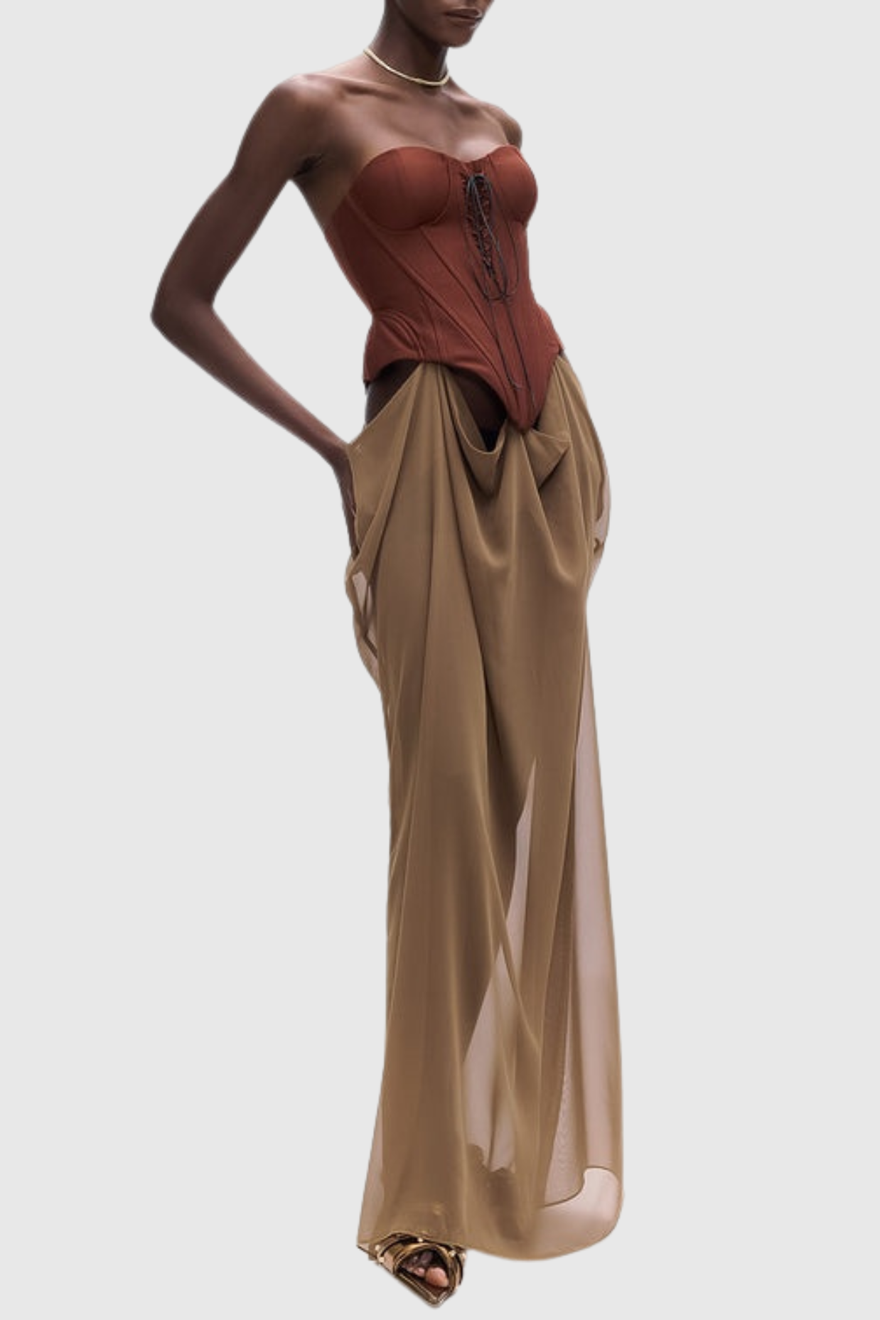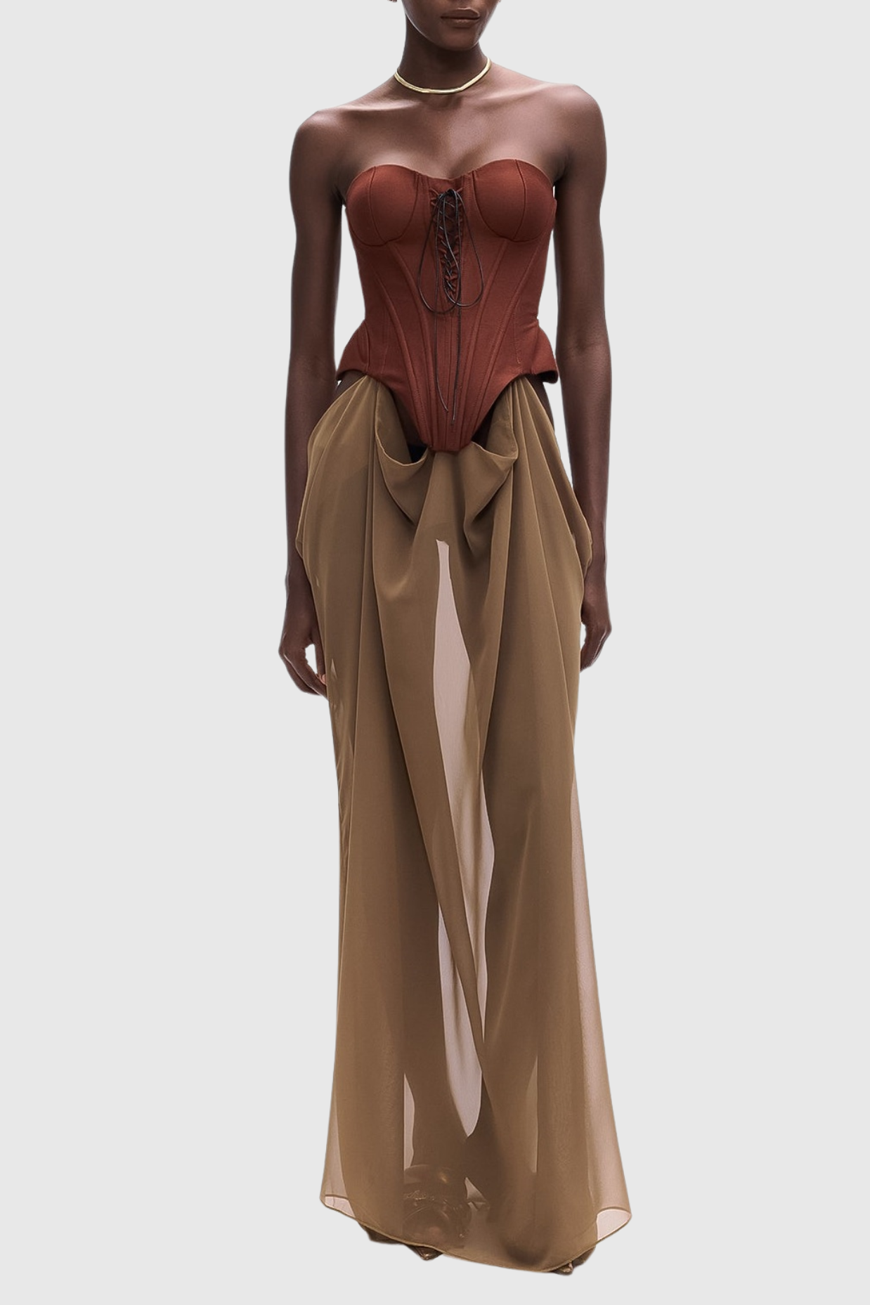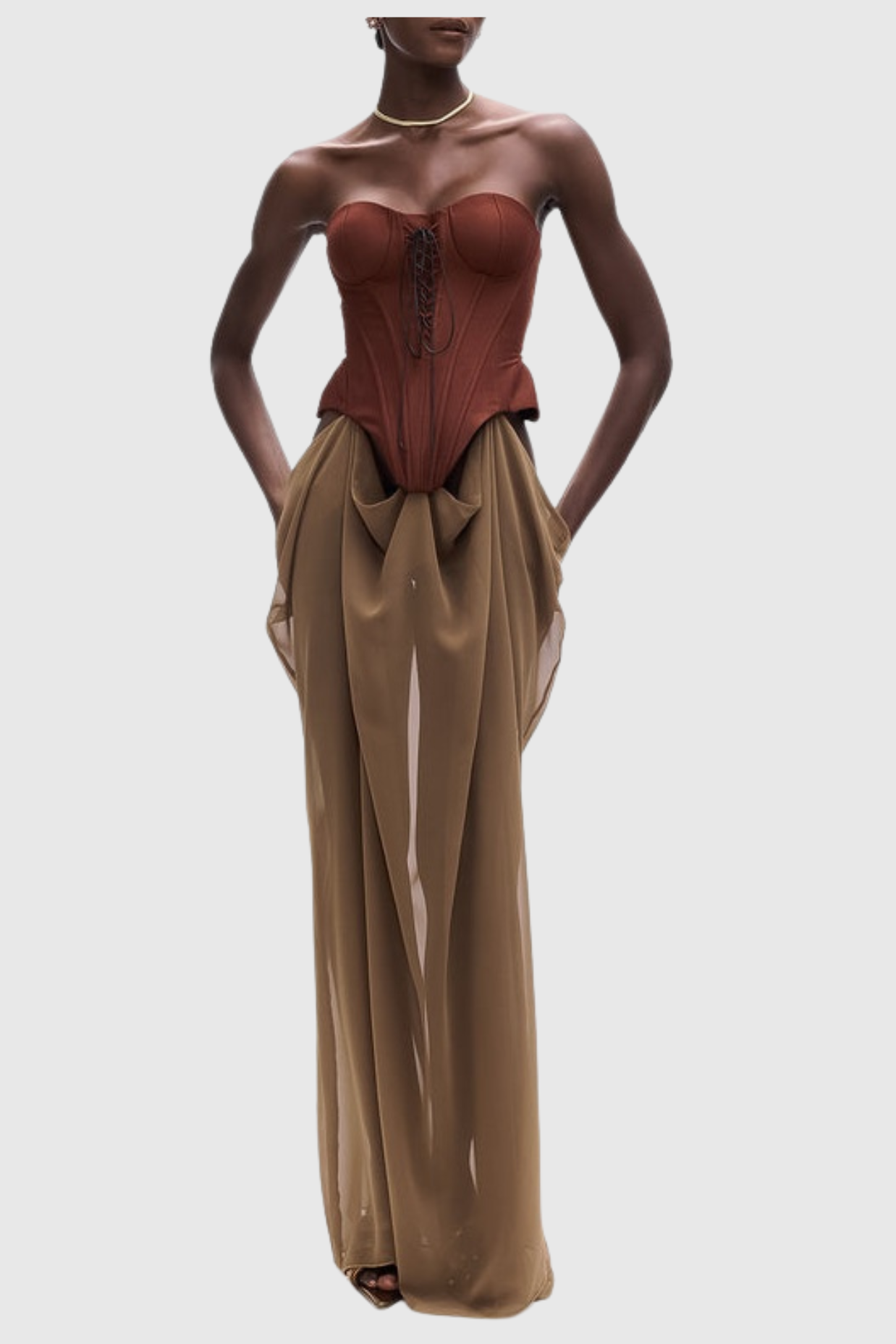 Tizoc Strapless Corset Lace Up Maxi Dress