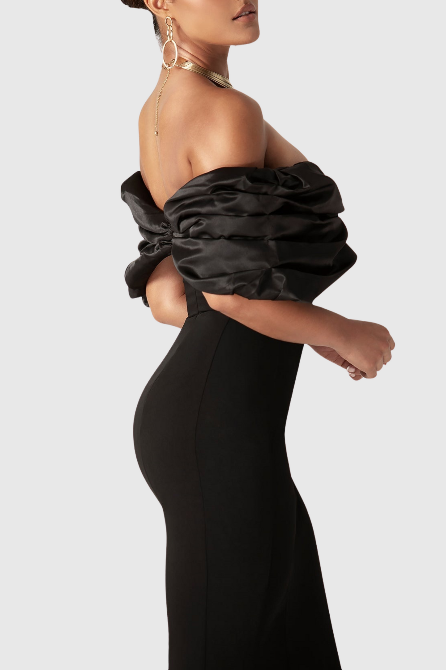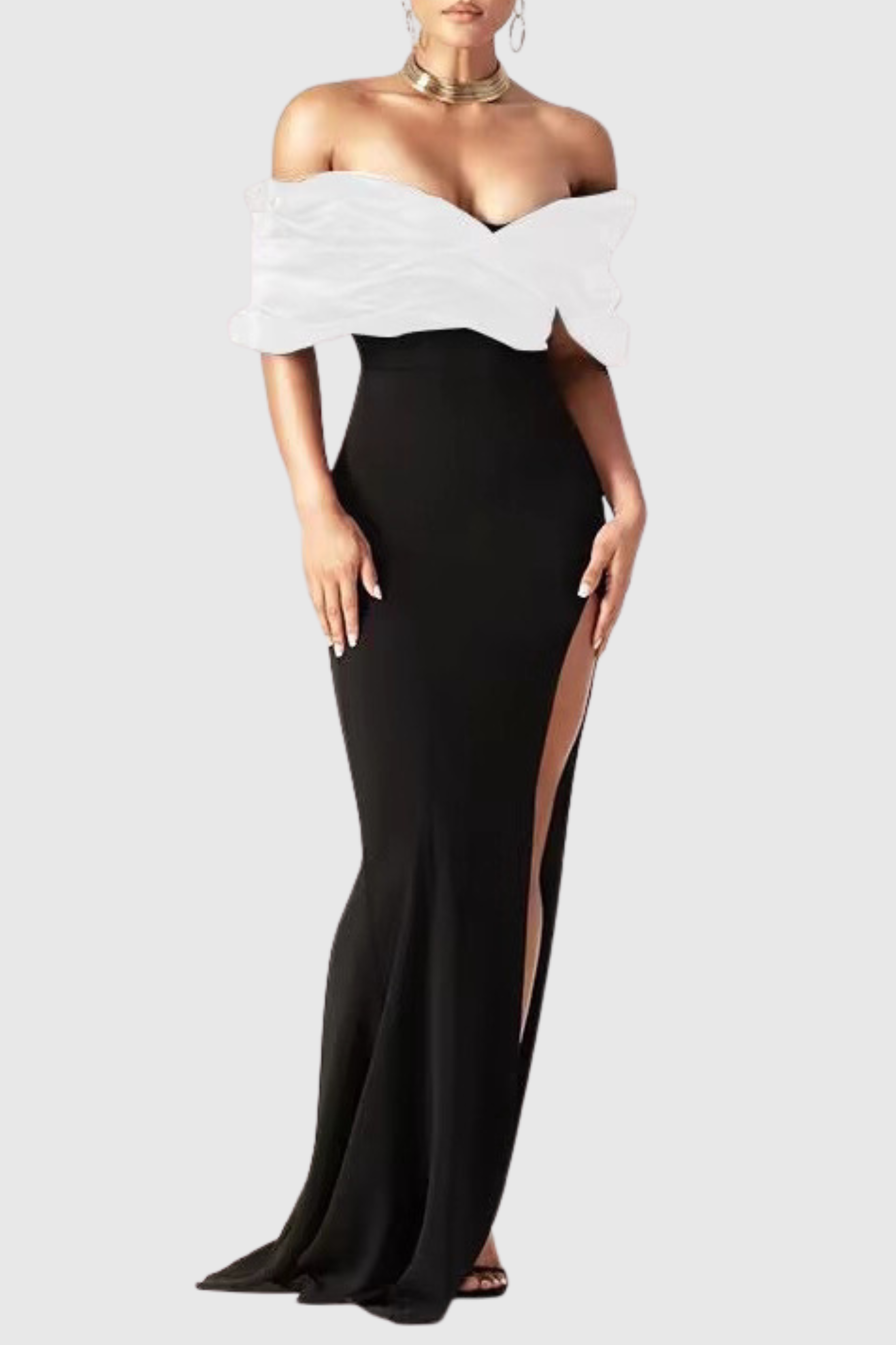 Elevate your evening with the Tonanta Off Shoulder Split Maxi Bandage Dress. Designed to contour your silhouette, this dress features a graceful off-shoulder neckline and a daring side split, blending elegance with subtle allure. Its bandage fabric offers a flattering fit that enhances your natural curves, making it perfect for formal occasions or upscale events. Embrace sophistication and confidence in every step.