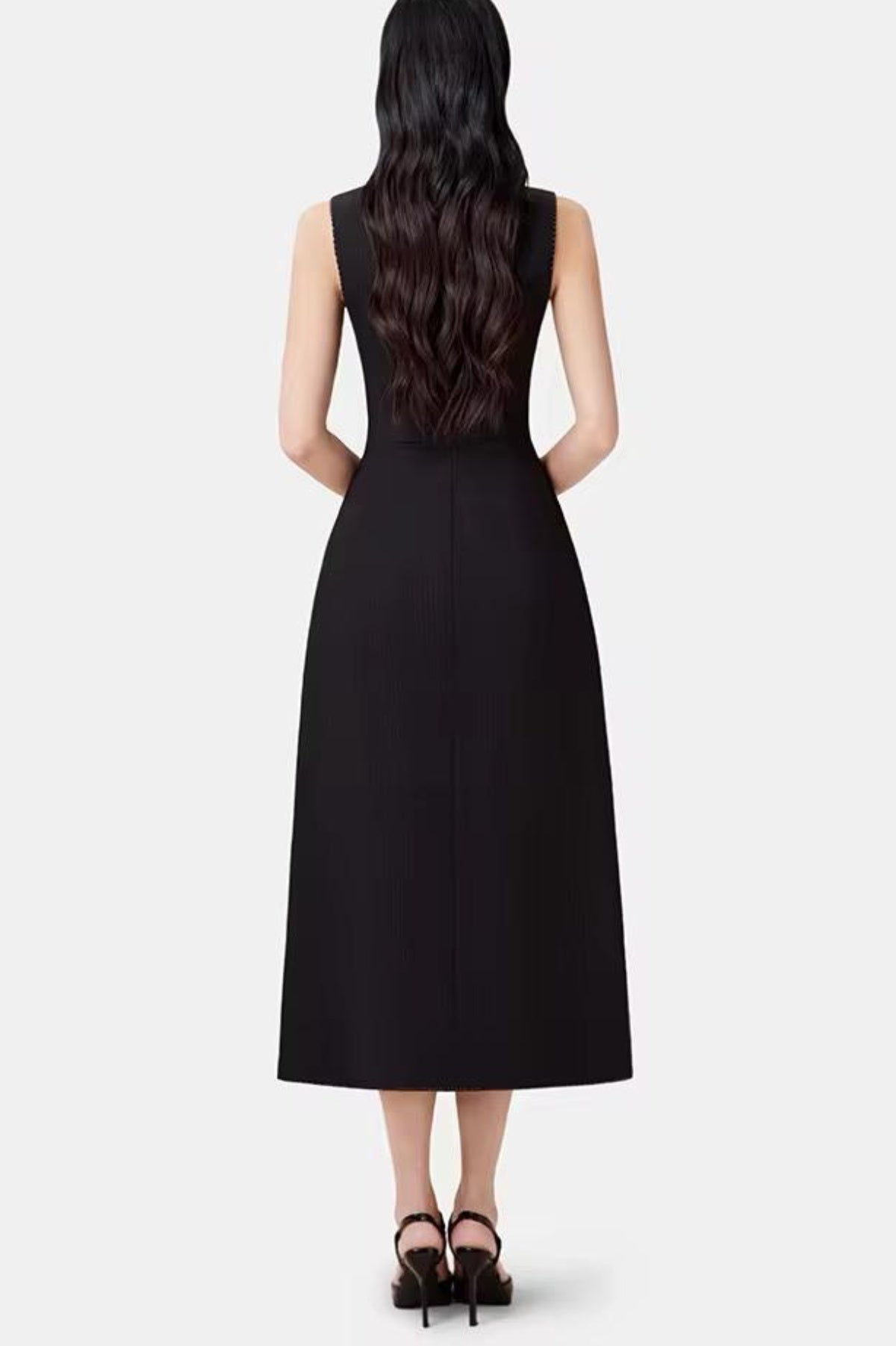 Vequa Asymmetric Collar Sleeveless Midi Dress - Black