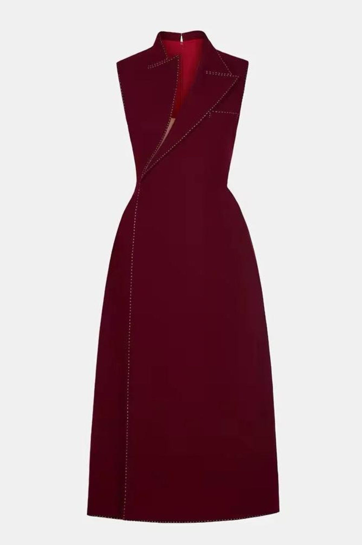 Vequa Asymmetric Collar Sleeveless Midi Dress - Wine