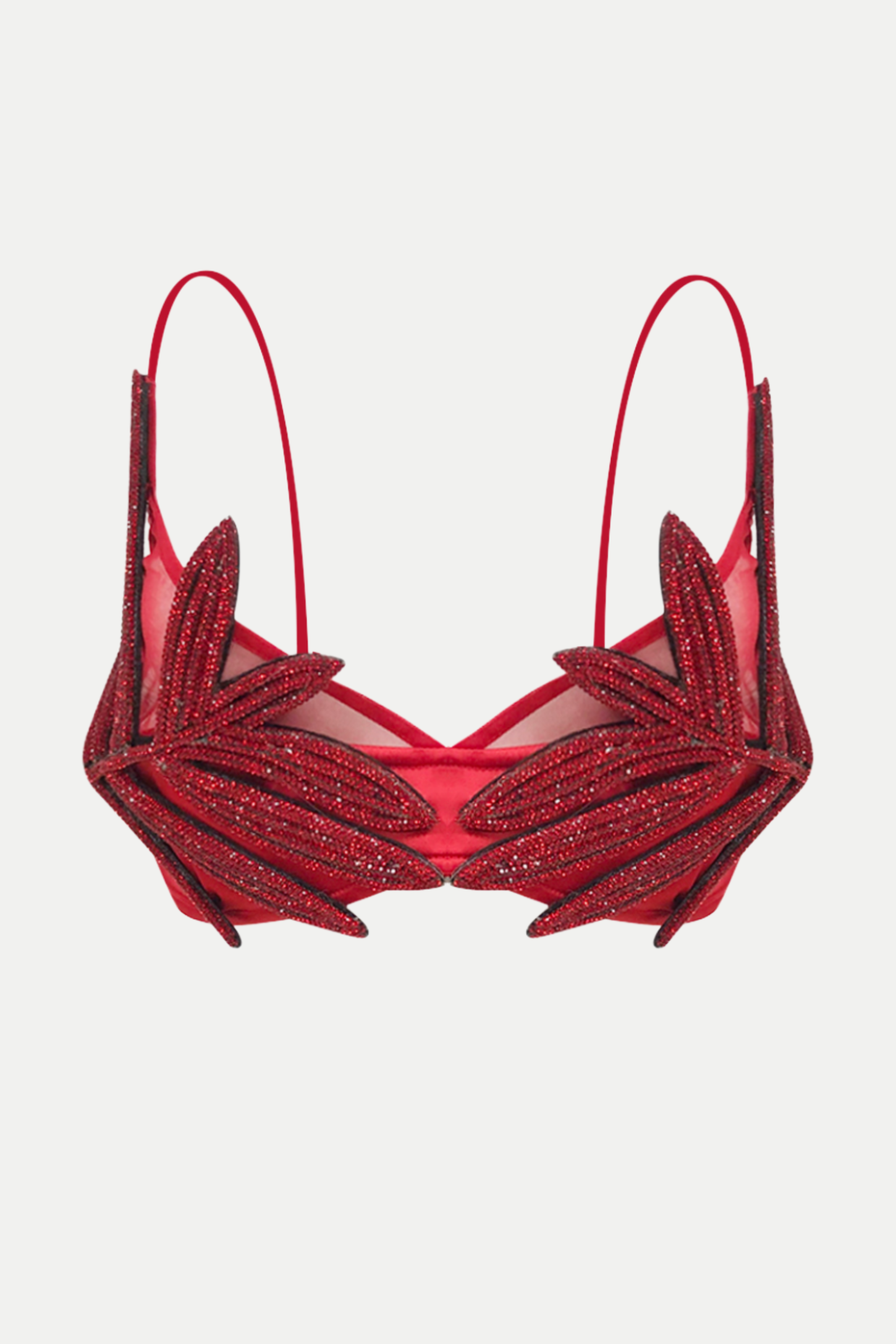 Effortlessly elegant, the Vieby Leaf Crystal Bralette is a must-have for any fashion-forward individual. Adorned with dazzling crystals, this bralette is perfect for adding a touch of luxury to any outfit. The intricate leaf design is a nod to nature and adds a unique touch to this sophisticated piece.