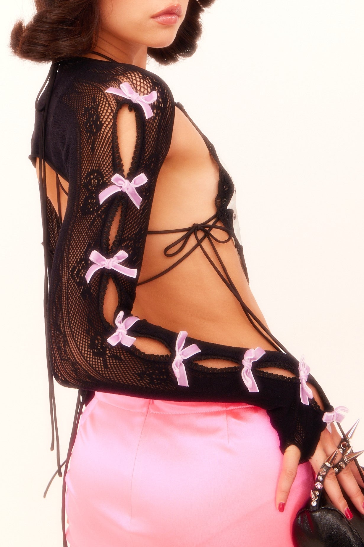 Yara Purple Velvet Bow Black Lace Oversleeves