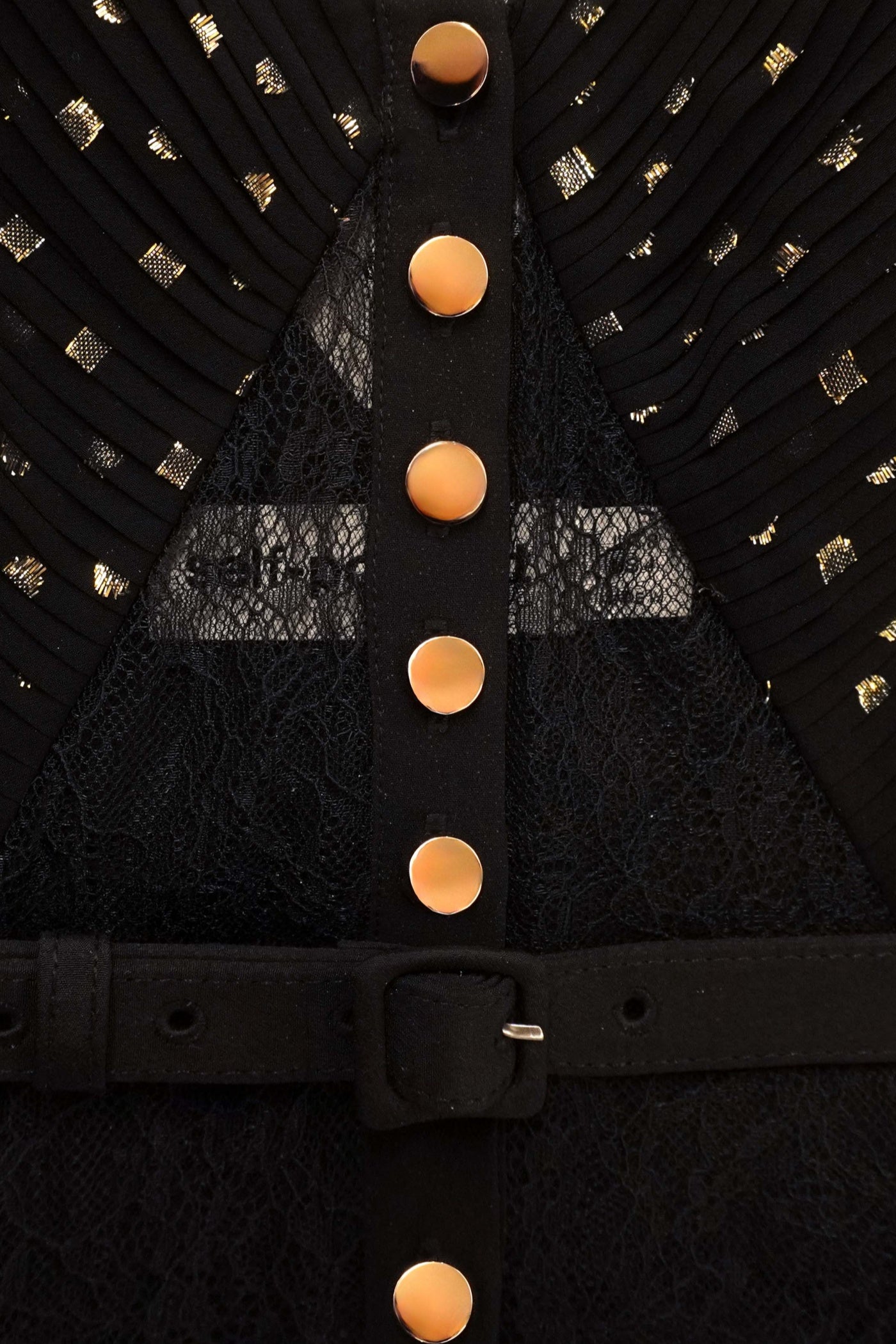 Yulaia Lace Dot Belted Pleated Maxi Dress