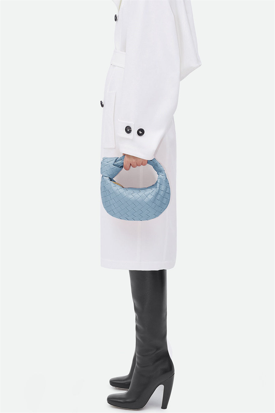 Introducing the Zariah Weave Knot Clutch Bag in timeless blue. This elegant and exclusive clutch features a unique weave technique and knot design that adds a touch of sophistication to any outfit. The perfect accessory for any luxurious occasion, this bag is both functional and stylish. Stand out from the crowd with the Zariah Weave Knot Clutch Bag.