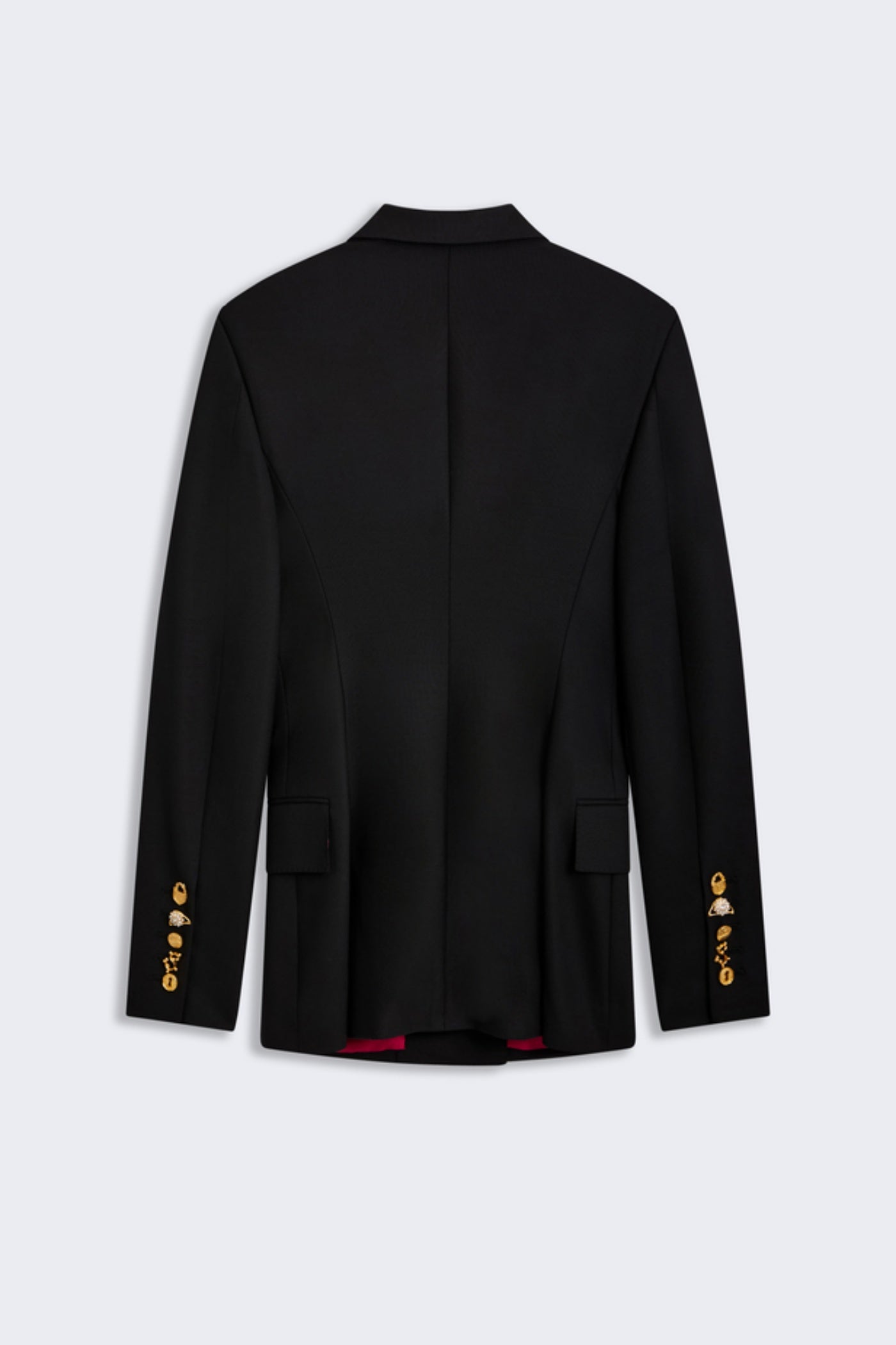 Elevate your wardrobe with the Zeina Measuring Tape Blazer, a refined piece that blends classic tailoring with a unique design twist. Crafted to offer a flattering fit, this blazer features subtle measuring tape-inspired details that add an element of sophistication and creativity. Perfect for making a polished statement at work or special occasions, it pairs effortlessly with both formal and casual ensembles. Experience timeless elegance with a modern edge in this distinctive blazer.