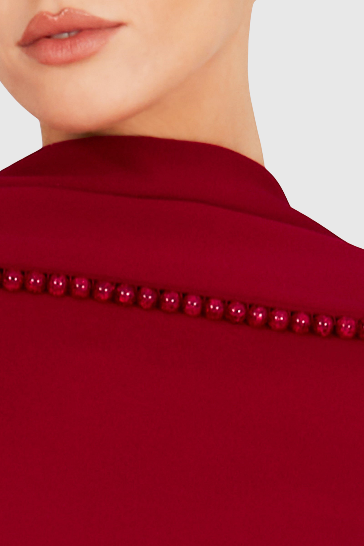 Zisel Pearl Trim Shawl Maxi Dress - Red